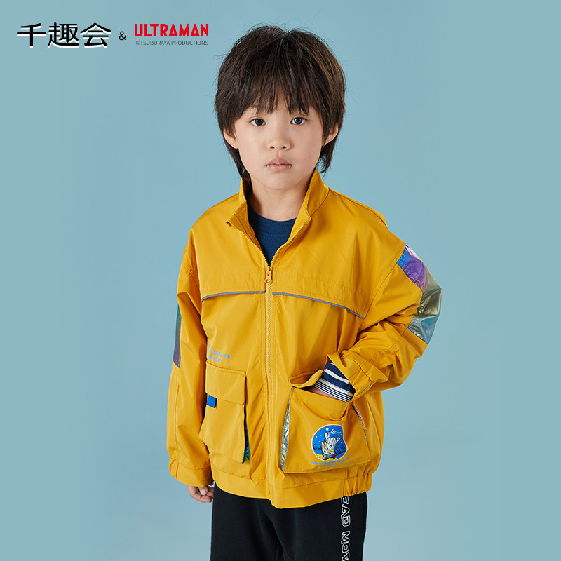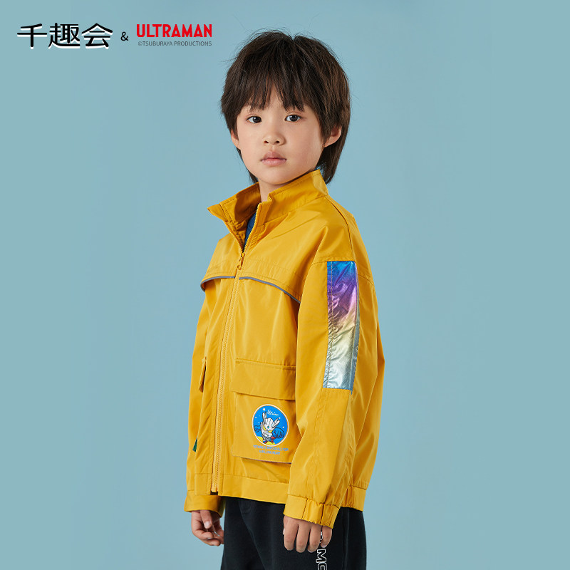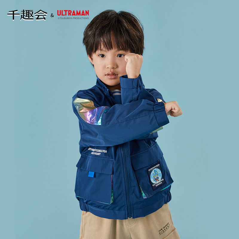 【奥特曼联名】千趣会春秋款儿童镭射反光条男童酷帅立领防风外套