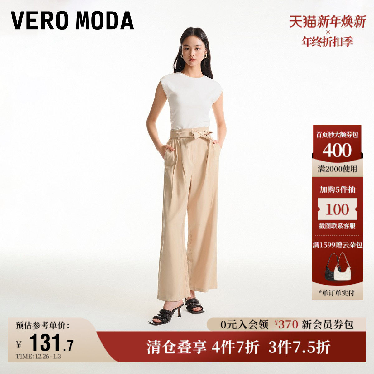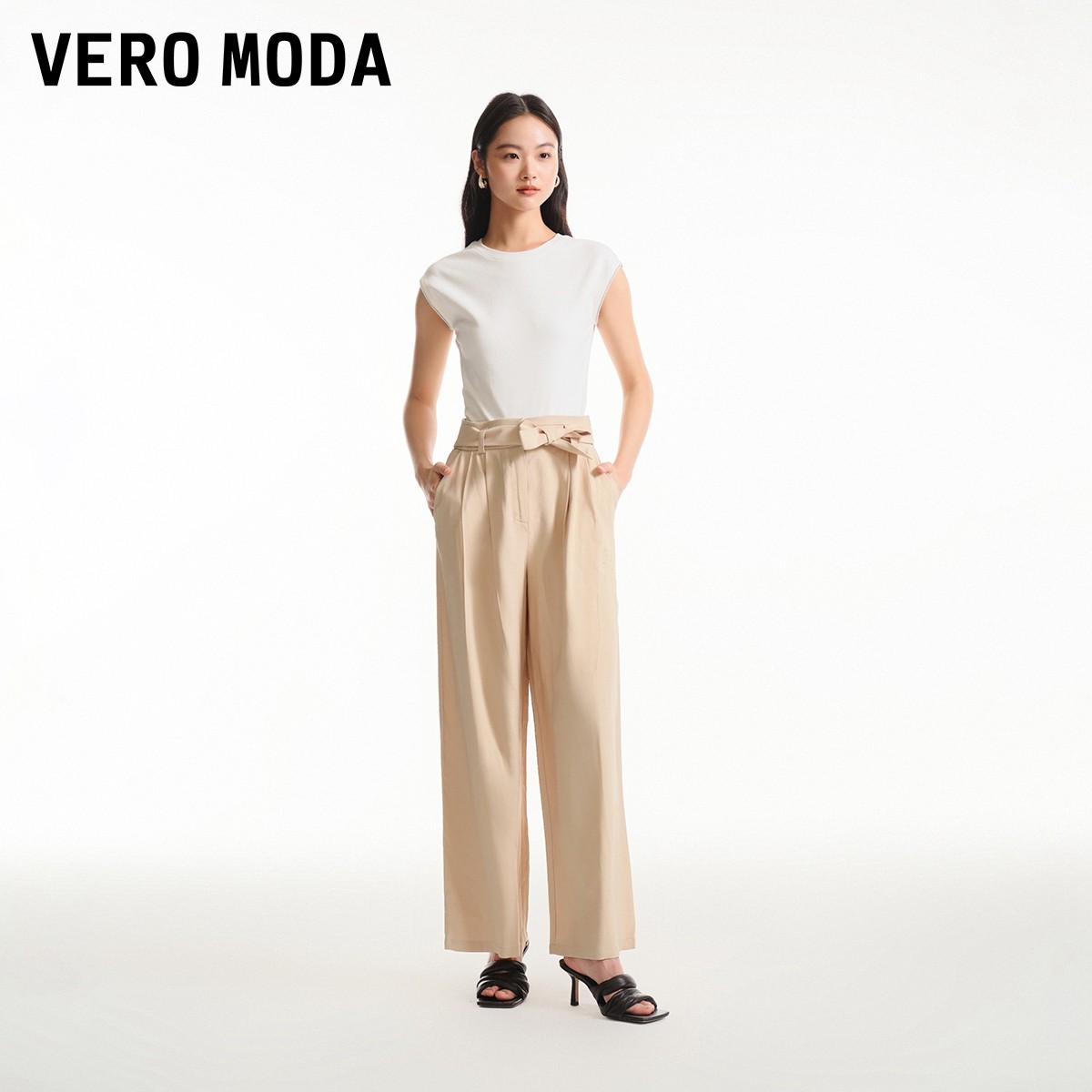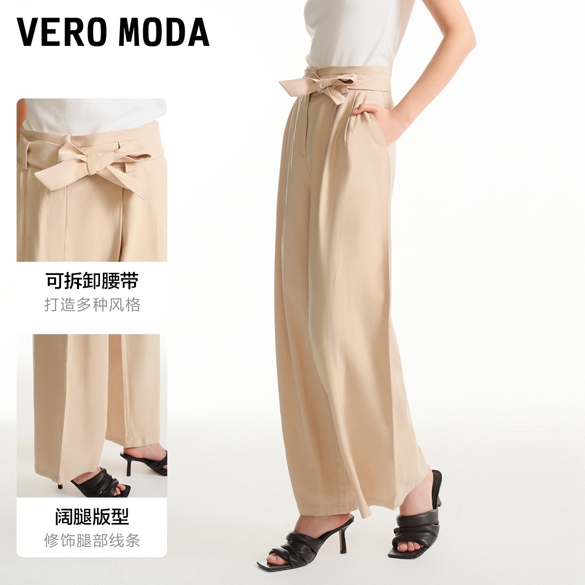 Vero Moda奥莱休闲裤子女夏季新款中腰阔腿通勤时尚优雅气质流行