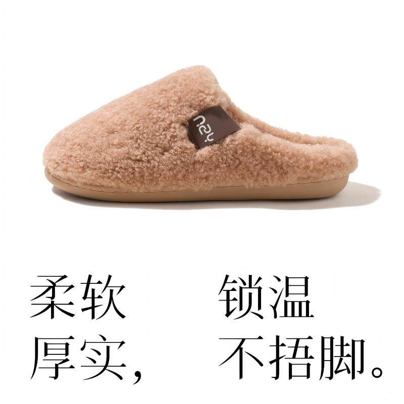 新款情侣棉拖鞋女冬季复古居家室内防滑保暖加绒加厚毛毛拖鞋厚底