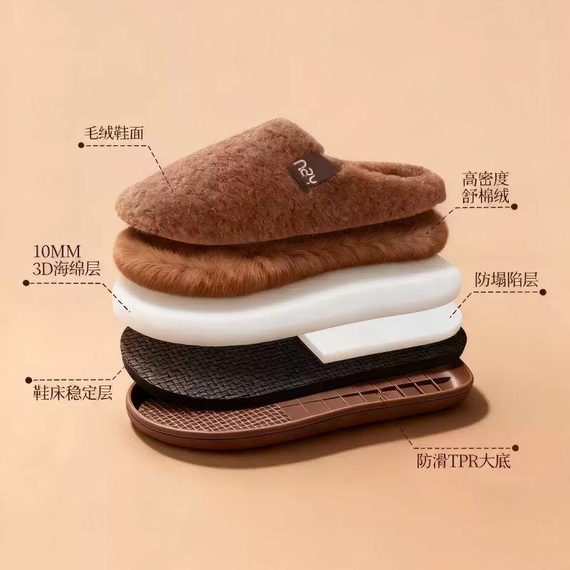 朴西棉拖鞋女士秋冬季厚底简约保暖室内居家用软底防滑情侣棉拖男