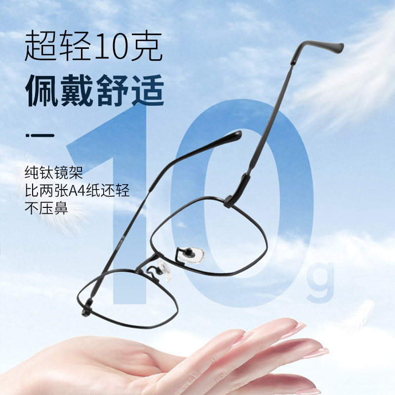 日本进口钛材防蓝光抗辐射近视眼镜女护眼无度数配平光眼睛男变色