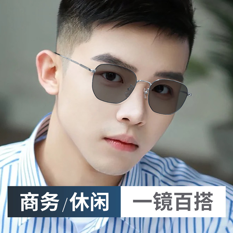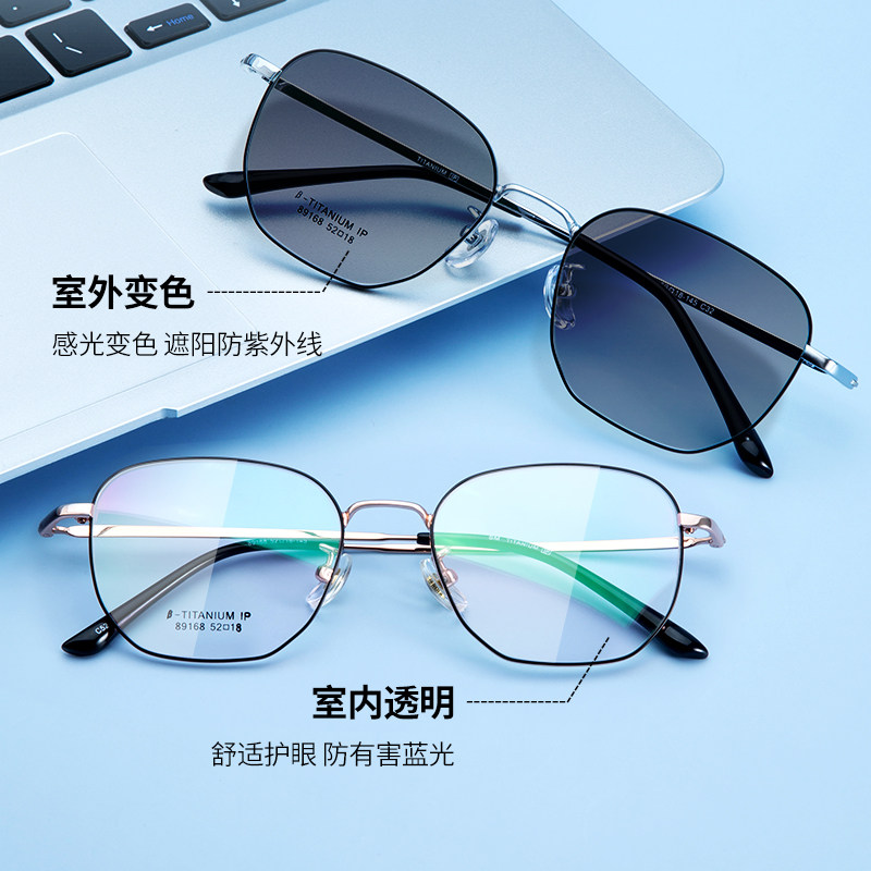 自动感光变色近视眼镜男款防蓝光抗辐射眼睛平光镜超轻纯钛女定制
