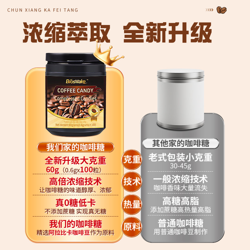 咖啡糖果豆无蔗糖0脂特浓提神醒脑开车上课防犯困零食官方正品