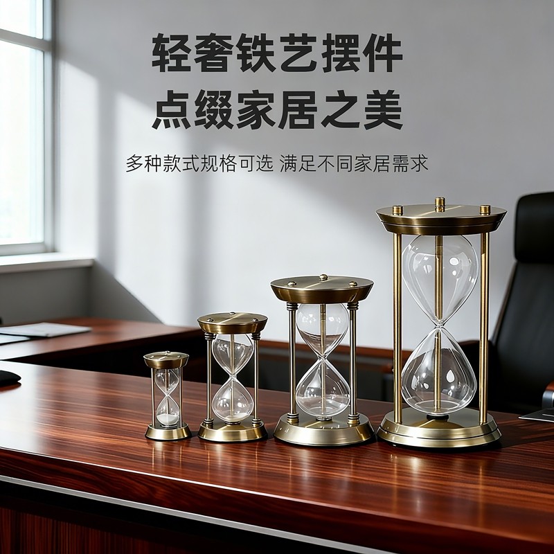 高档金属沙漏计时器30分钟欧式书房办公室家居装饰品可自装沙子