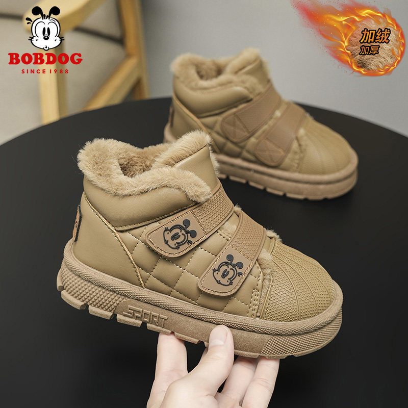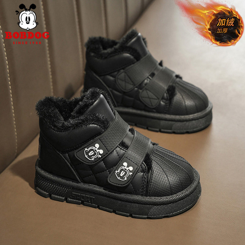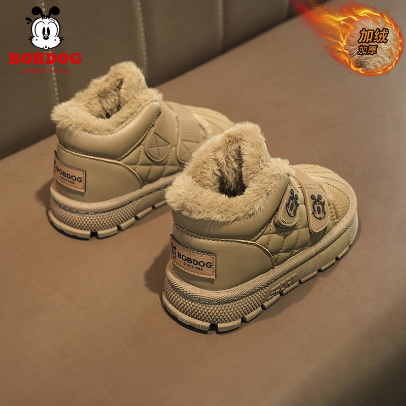 巴布豆童鞋男童棉鞋2025冬季新款加绒加厚儿童保暖短靴女童雪地靴