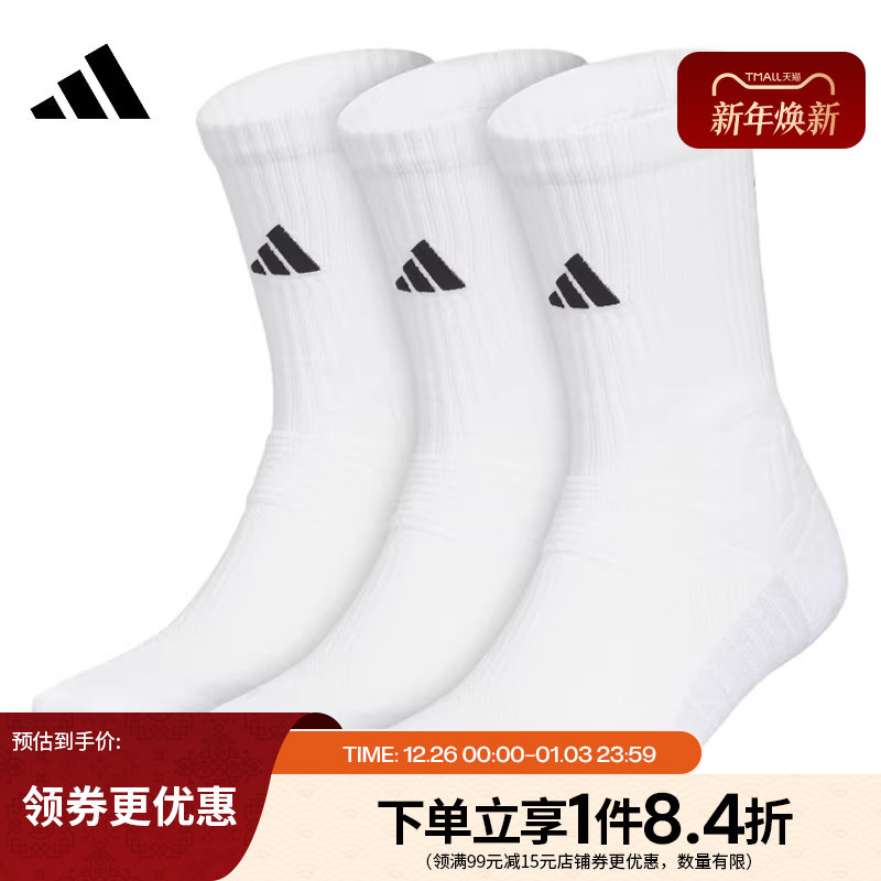 阿迪达斯官网冬季男女袜篮球运动休闲袜子三双装KE7805