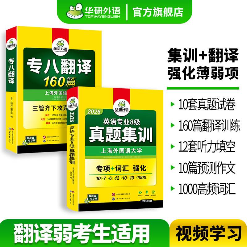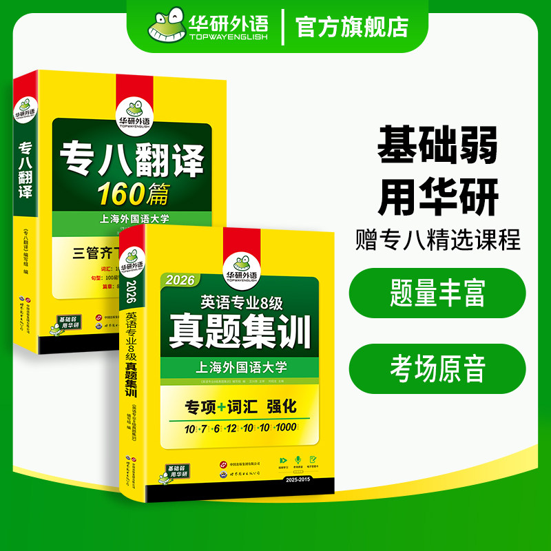 华研外语英语专八真题集训专八翻译备考2026英语专业八级历年真题考试卷翻译160篇tem8级资料听力翻译阅读理解词汇写作文专项训练