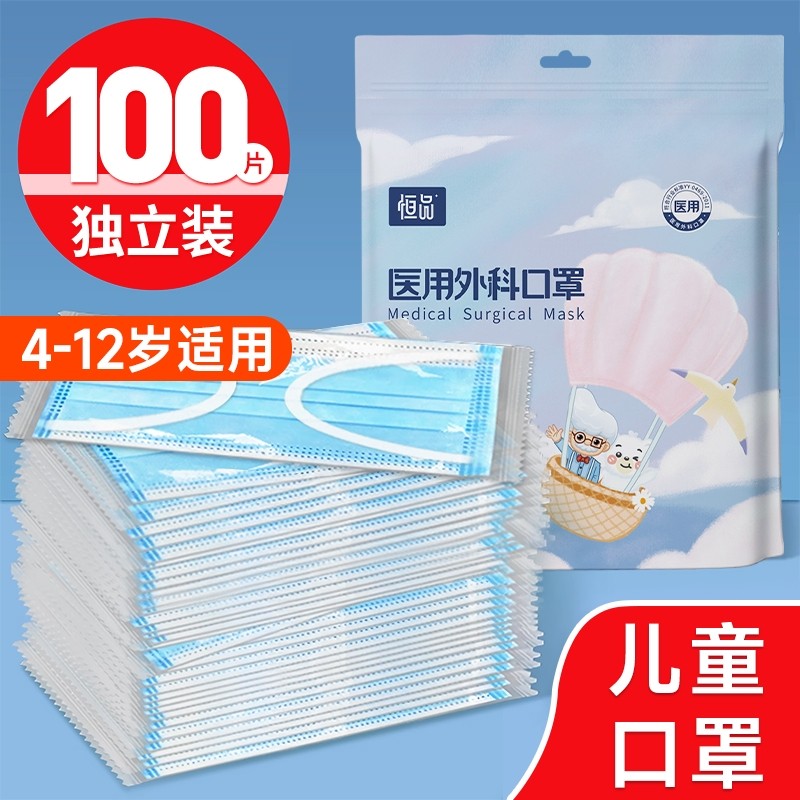 100只儿童医用外科口罩一次性医疗4到12专用独立包装透气卡通可爱