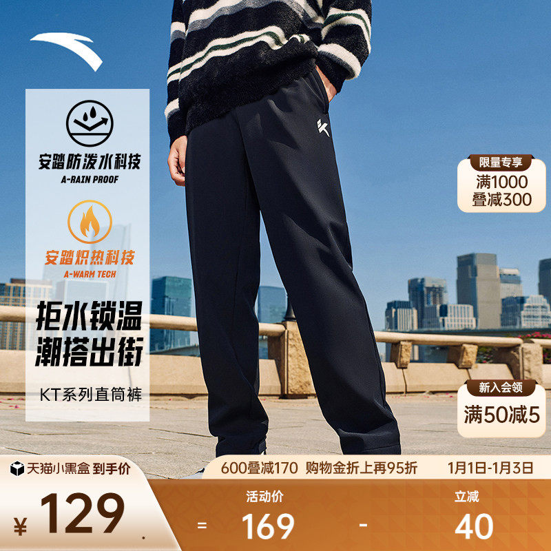 安踏KT三防运动长裤男冬季新款防泼水梭织运动裤加绒宽松直筒裤子