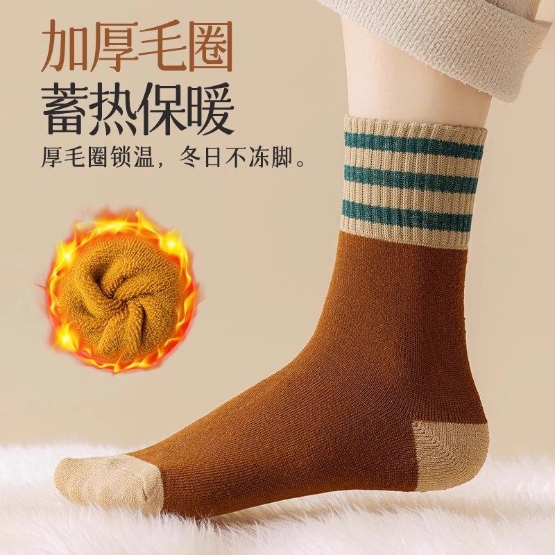 毛圈袜子女冬季加绒加厚毛巾袜冬天保暖长袜秋冬款男袜中筒袜长筒
