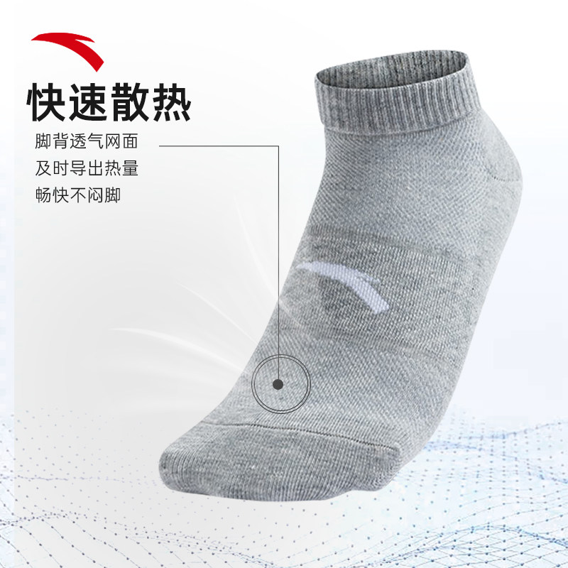 安踏运动袜三双装男女抗菌防臭吸汗棉质体测跑步登山短筒中筒袜子