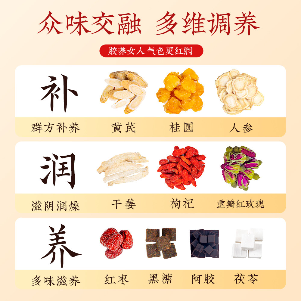 同仁堂黄芪当归搭阿胶红枣桂圆枸杞茶补气养血调理女人姜枣养生茶