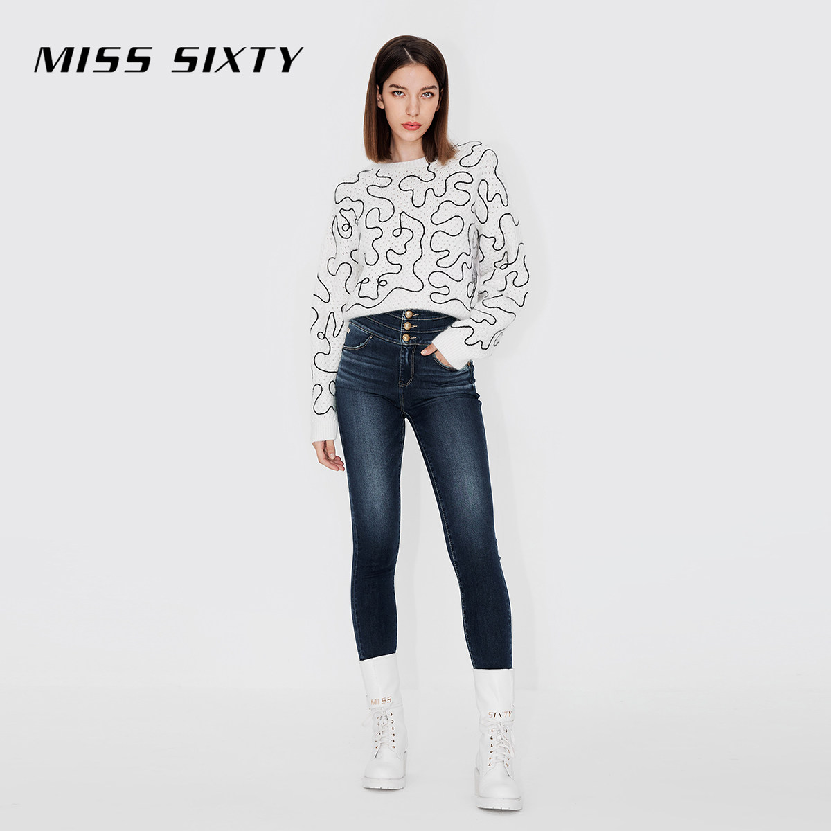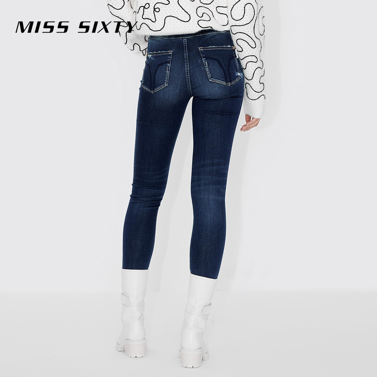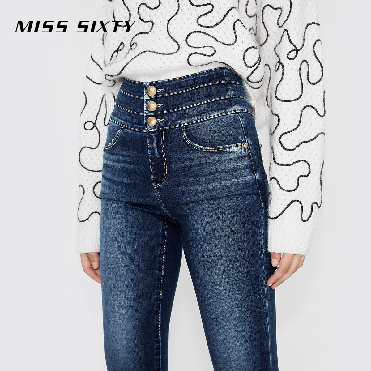 Miss Sixty牛仔裤女三环高腰复古洗水显瘦修身百搭小脚铅笔裤