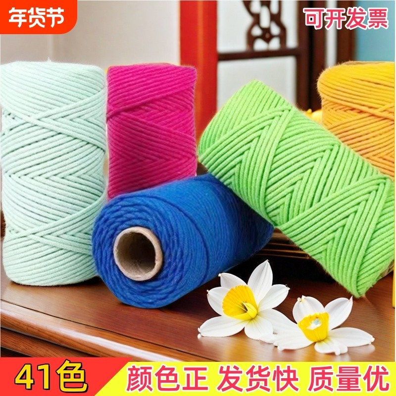 3mm彩色包芯棉绳手工diy编织绳棉线绳子挂毯装饰绳车挂材料包工艺