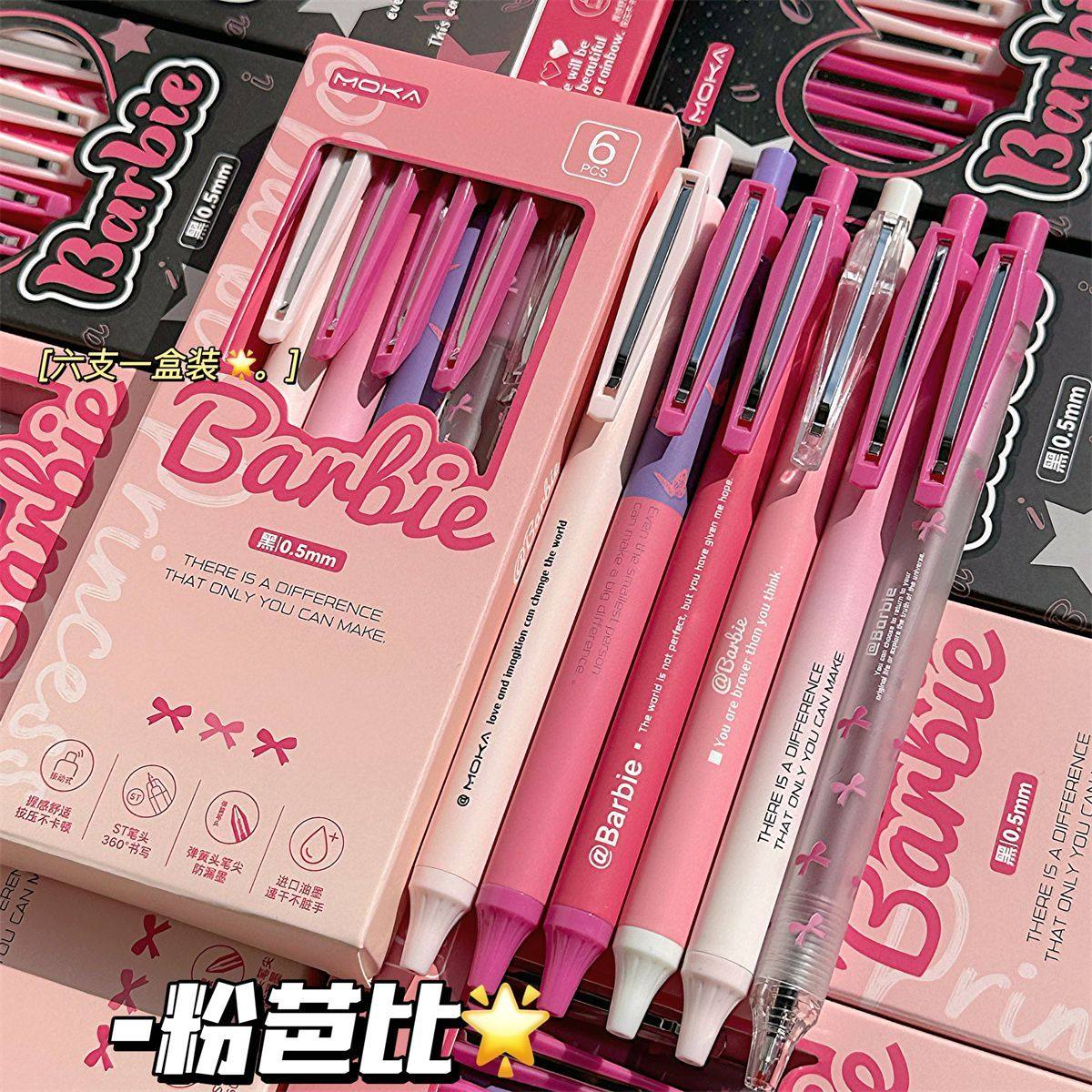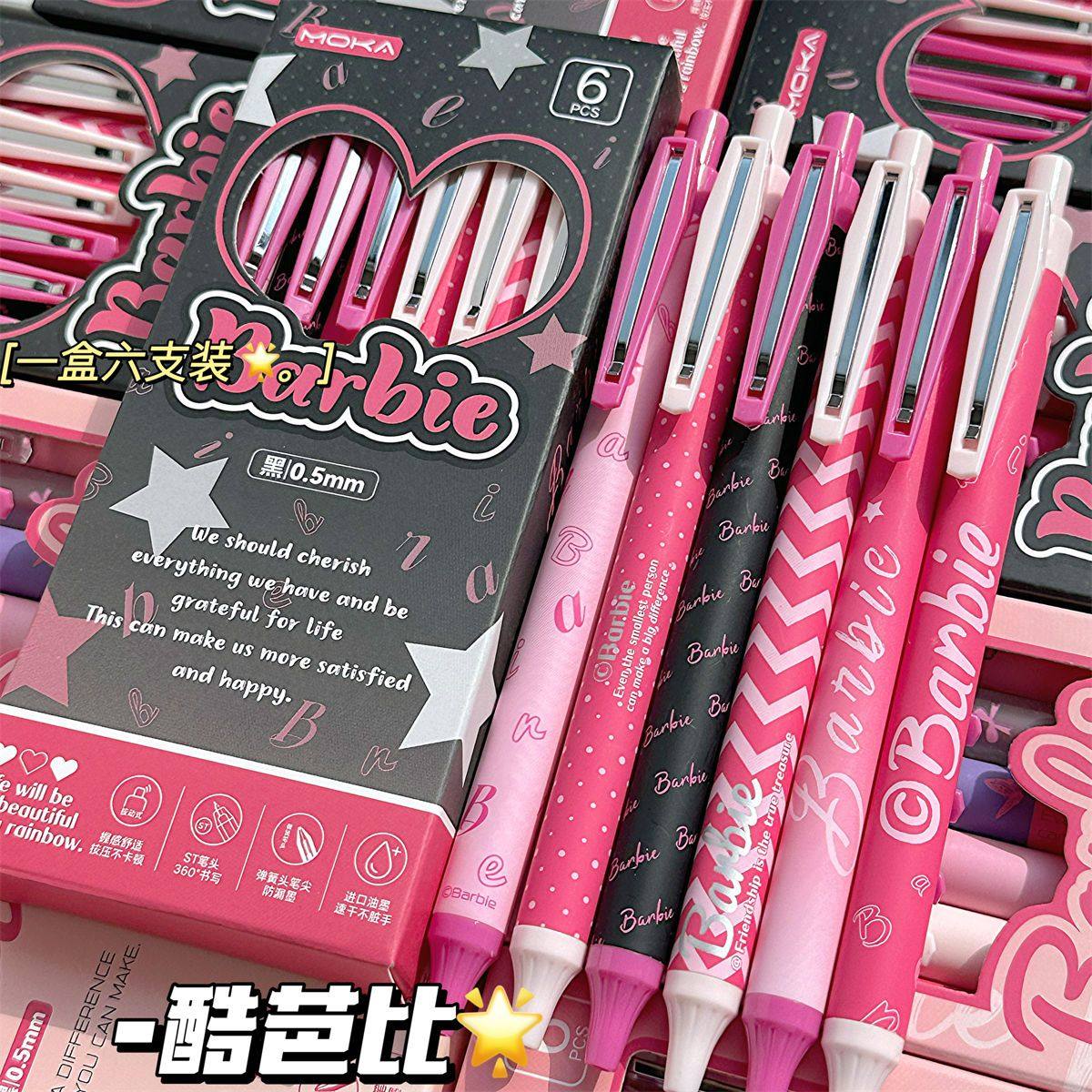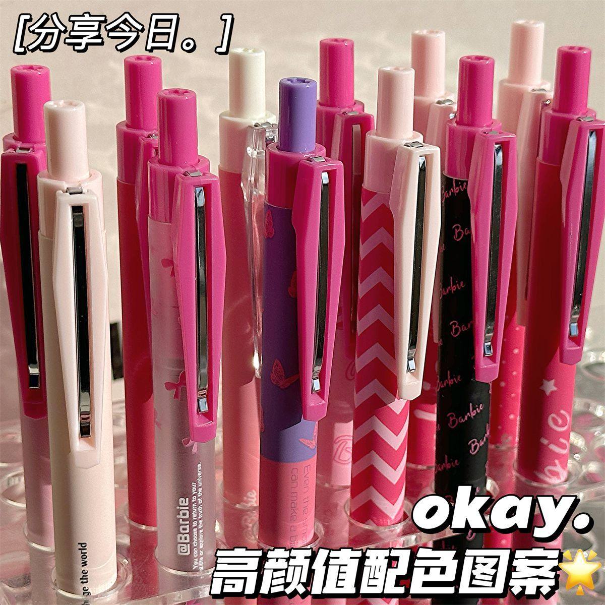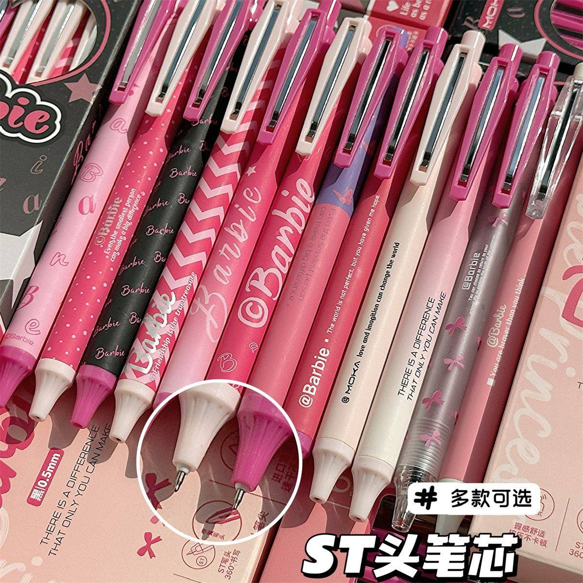 唇釉粉芭比少女心高颜值魔卡按动笔学生刷题速干中性笔ST黑笔复古