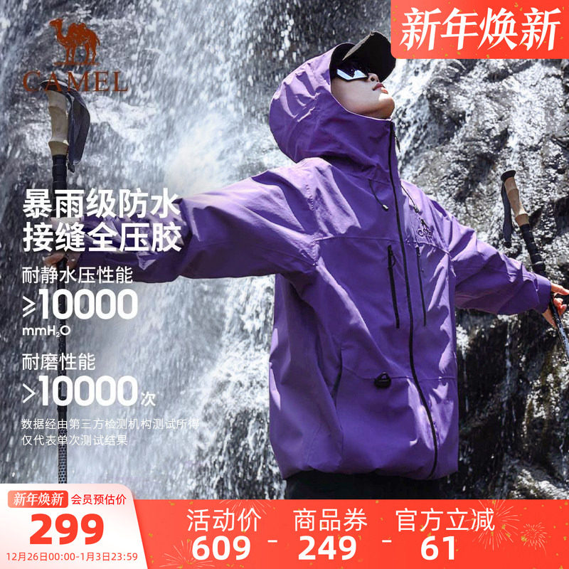 骆驼户外紫玫红色冲锋衣女暴雨防水防风外套男三合一两件套登山服