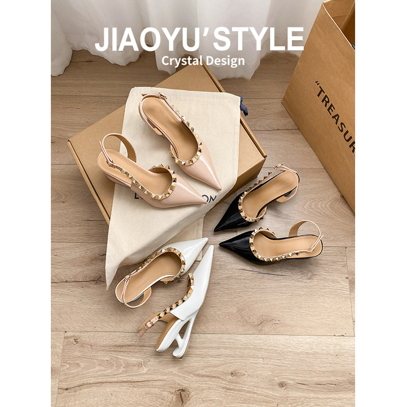 吴大叔2025秋冬时尚后空凉鞋尖头高跟鞋女气质高级不累脚漆皮女鞋