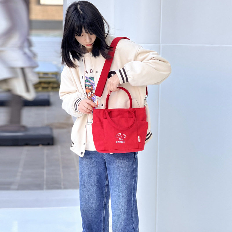 早春新款女包两用帆布包便当手提包多口袋实用斜挎包