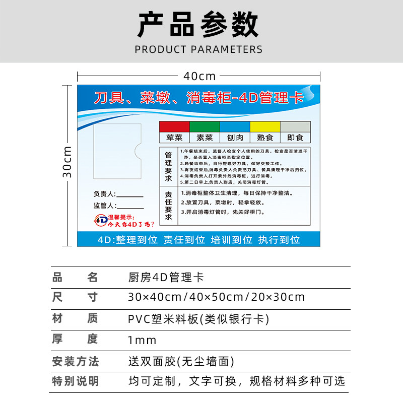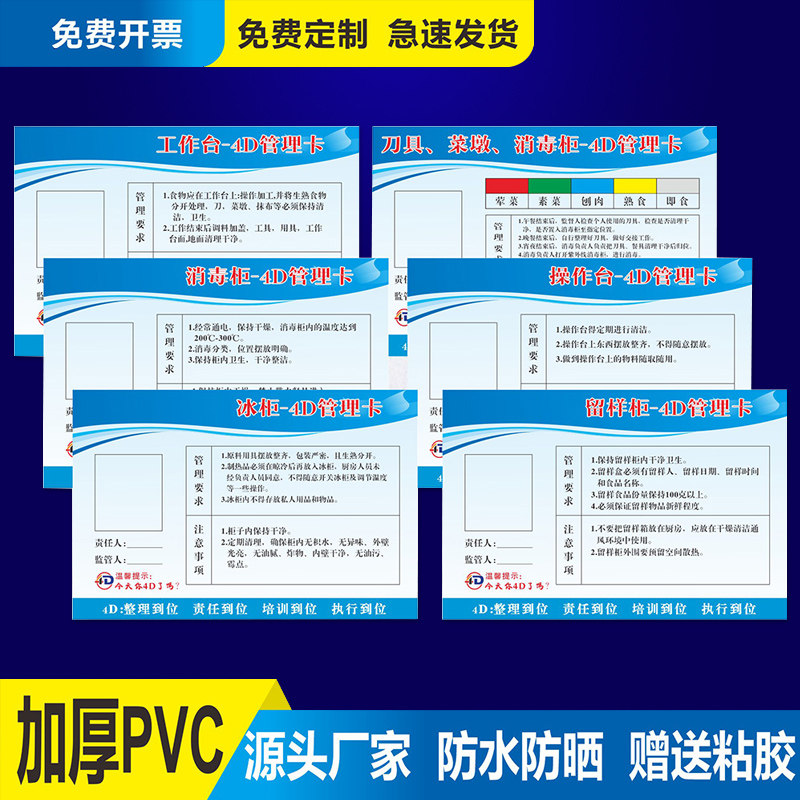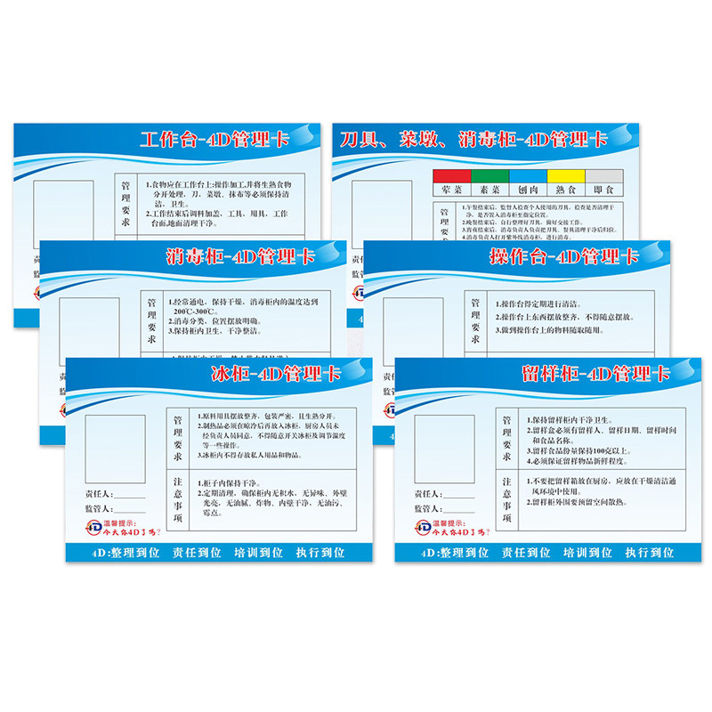 餐厅厨房4D管理卡标识牌全套学校幼儿园餐饮标示酒店饭店卫生检查工具五常管理标语食堂责任冰箱消毒提示牌