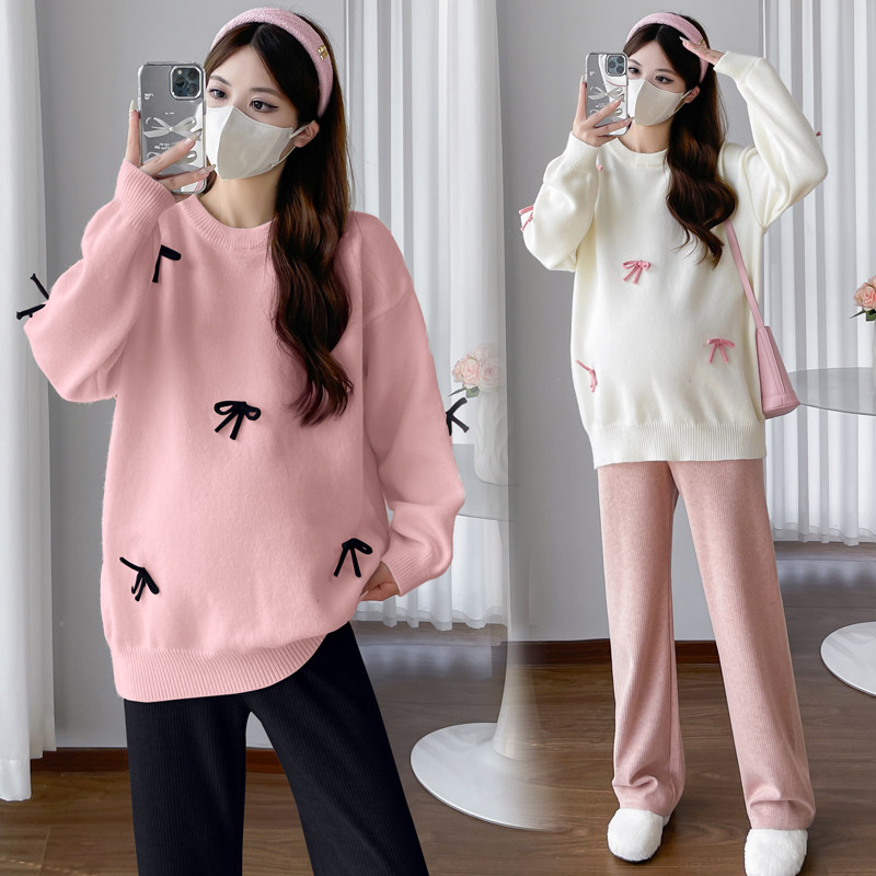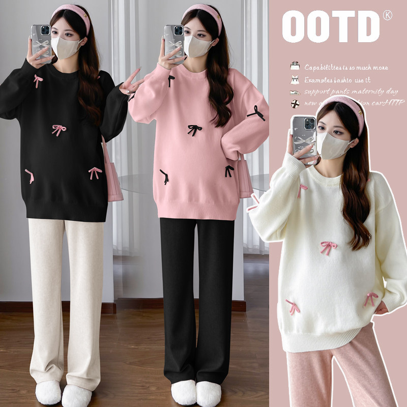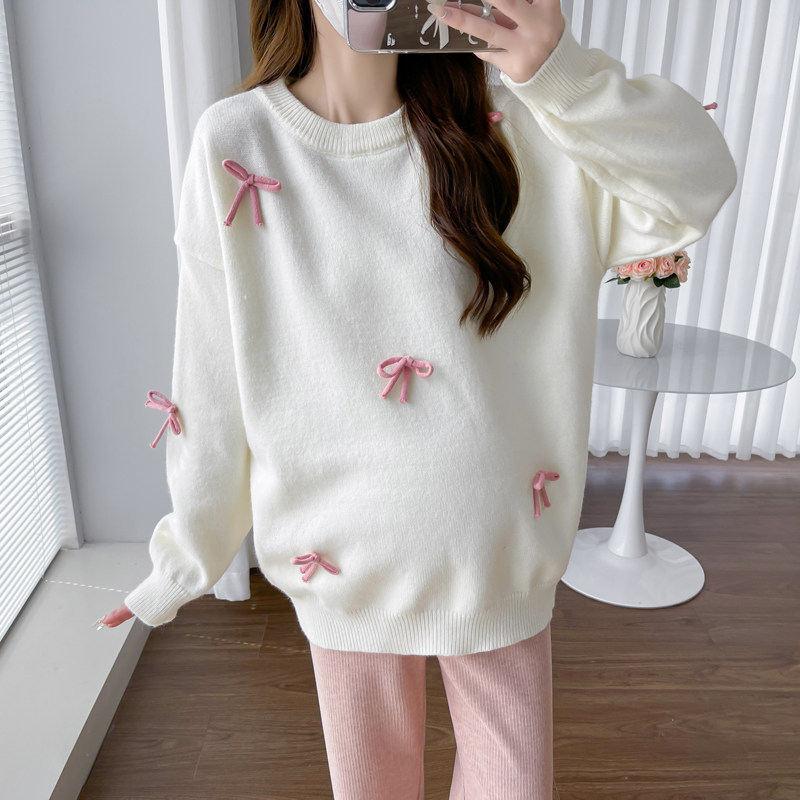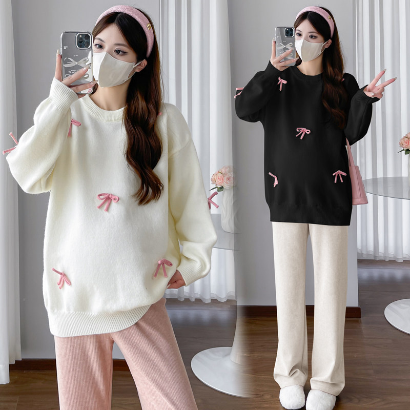 婧麒孕妇秋冬款2025新款蝴蝶结毛衣宽松慵懒风针织衫女上衣打底衫