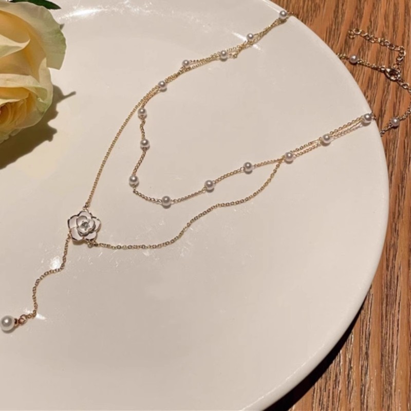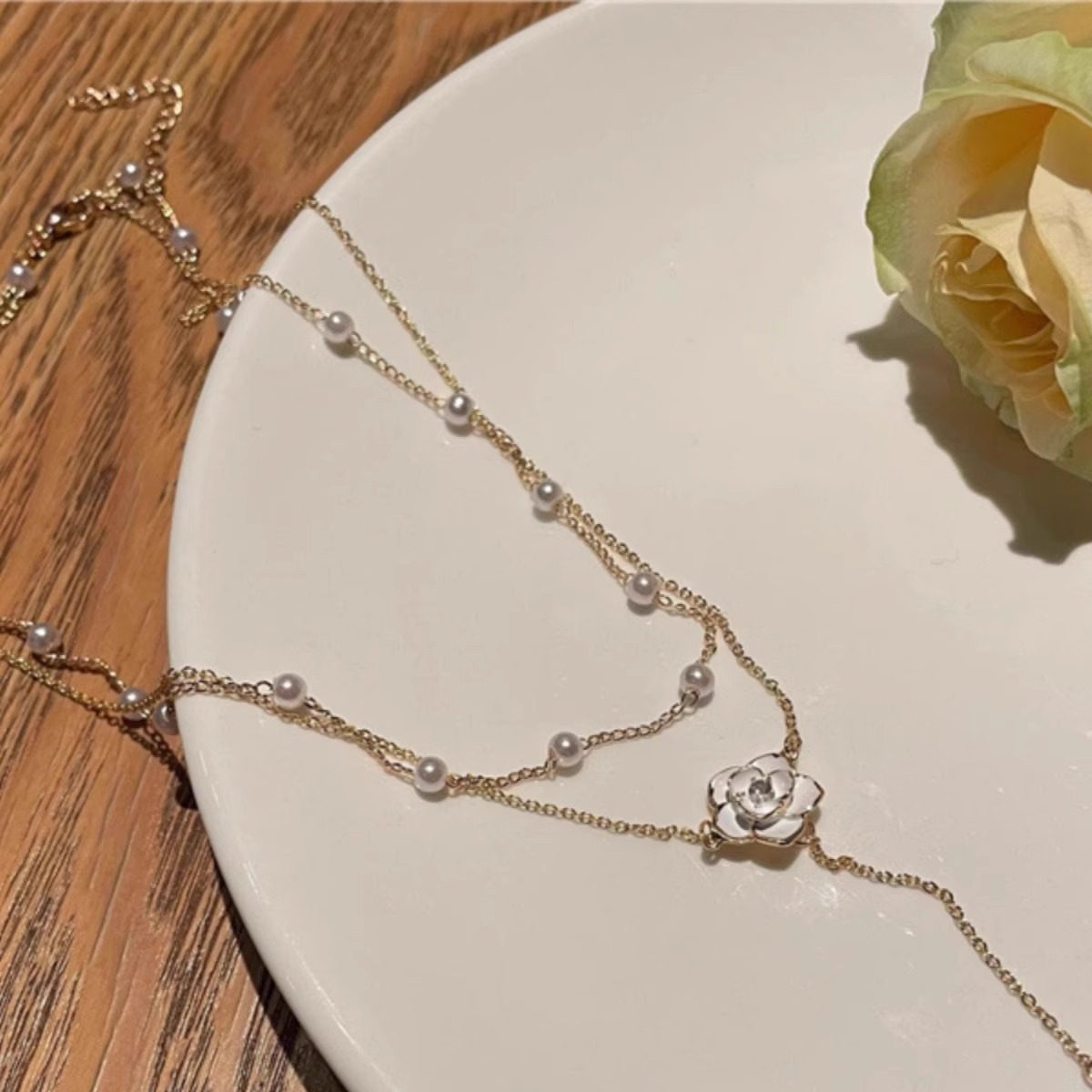 珍珠项链女山茶花颈链高级轻奢小众设计感2025年新款锁骨链双层