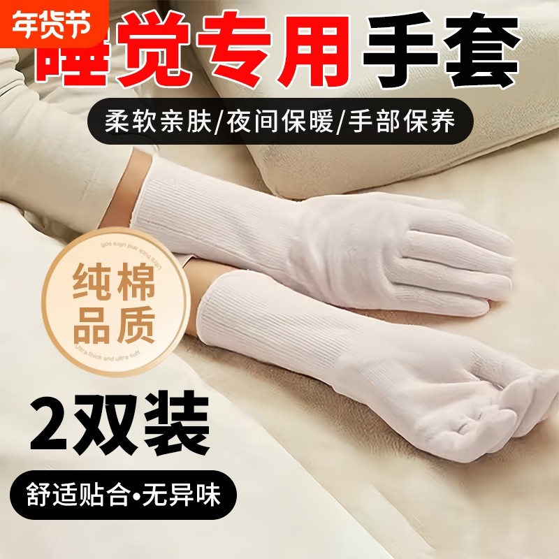 睡觉专用手套纯棉夜间睡眠护手霜保湿保养美容透气防干裂手部无感