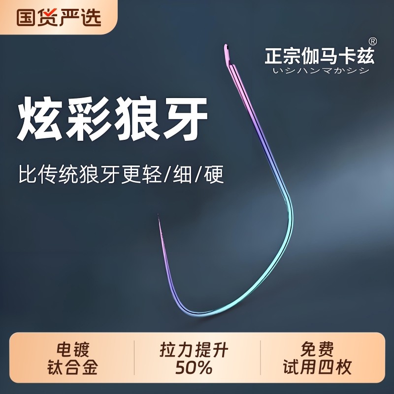 伽马卡兹狼牙竞技岩鱼钩散装改良黑坑偷驴专用细条钛合金极细加强