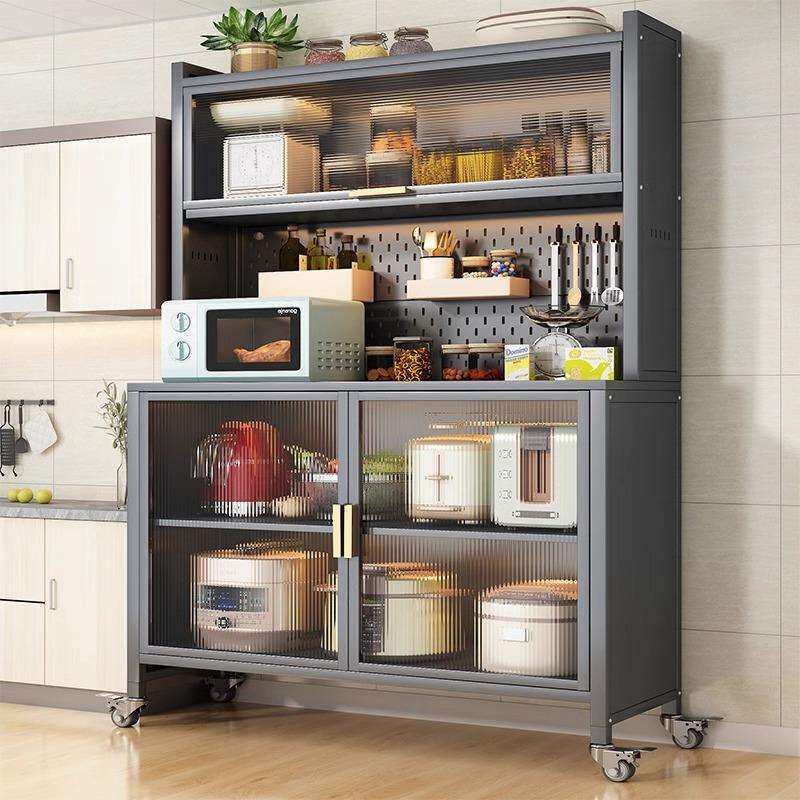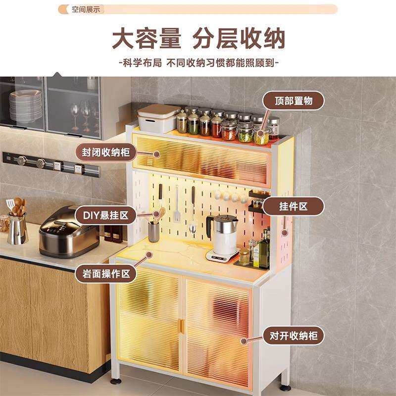 厨房置物架家用落地收纳柜餐边柜一体靠墙多功能储物柜微波炉橱柜