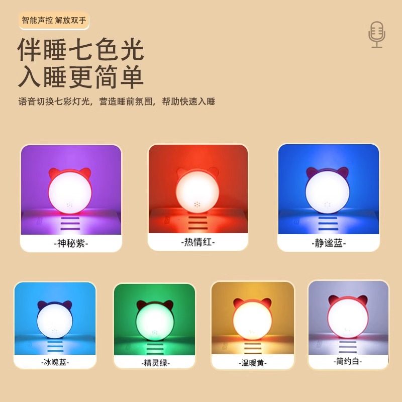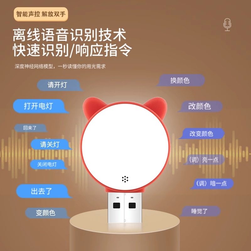 PS柔光卧室LED声控灯感应床头灯人工语音控制小夜灯智能USB插电台语音小夜灯