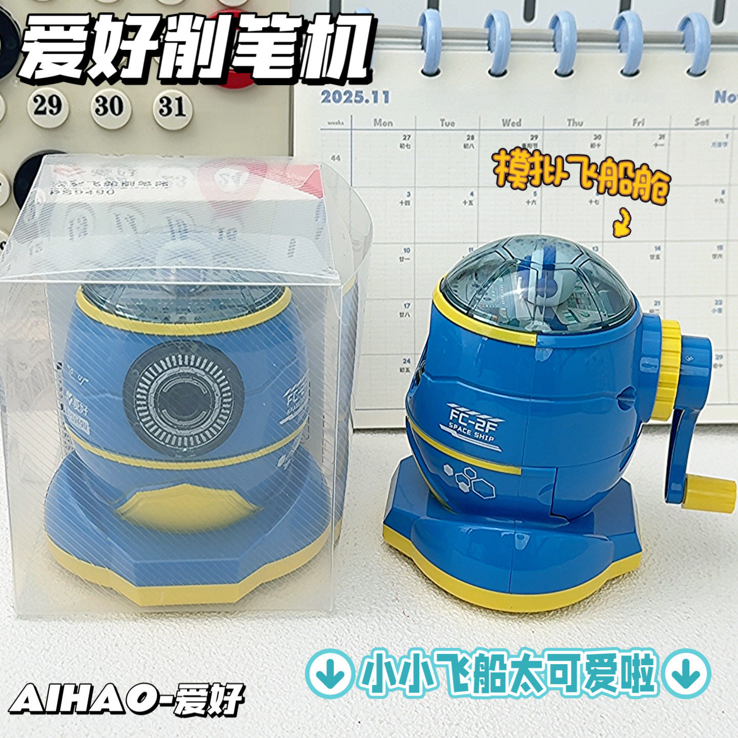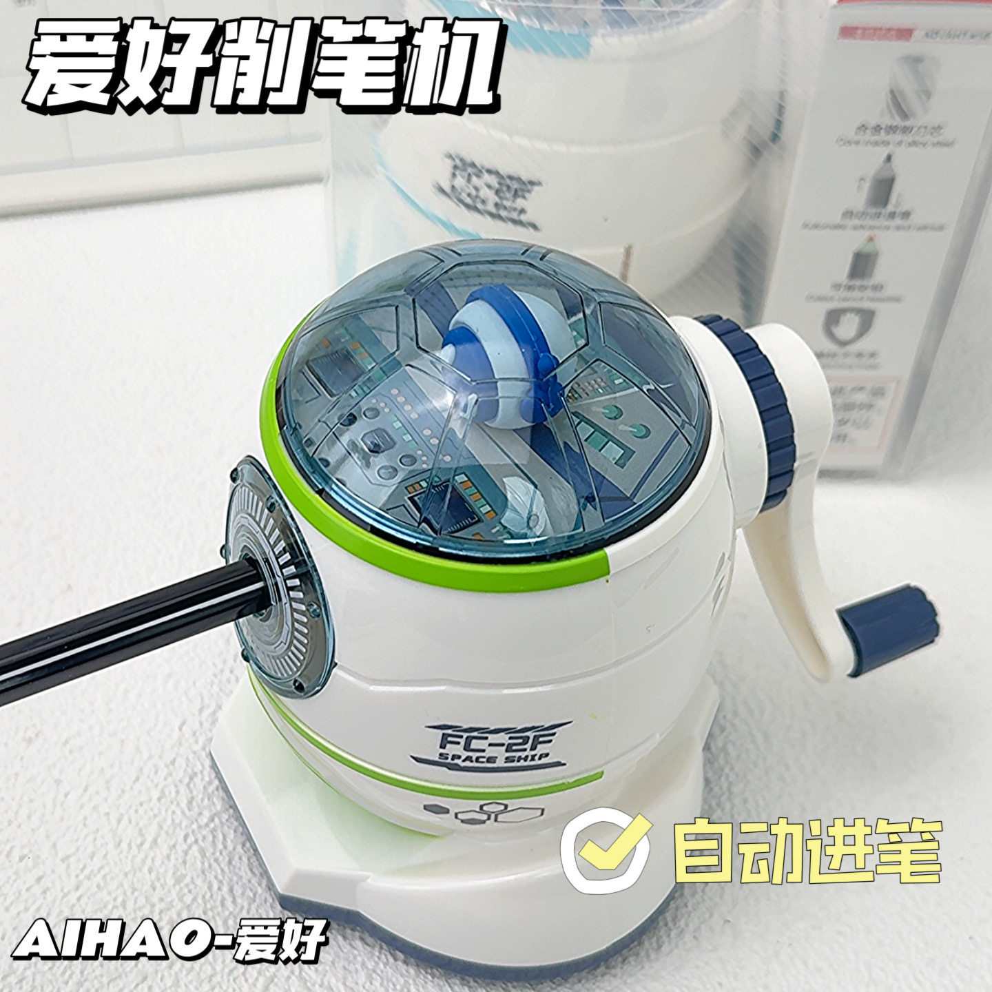 爱好太空飞船削笔器小学生专用手摇卷笔刀儿童铅笔削笔刀幼儿园手动转笔刀笔刨素描绘画美术生专用