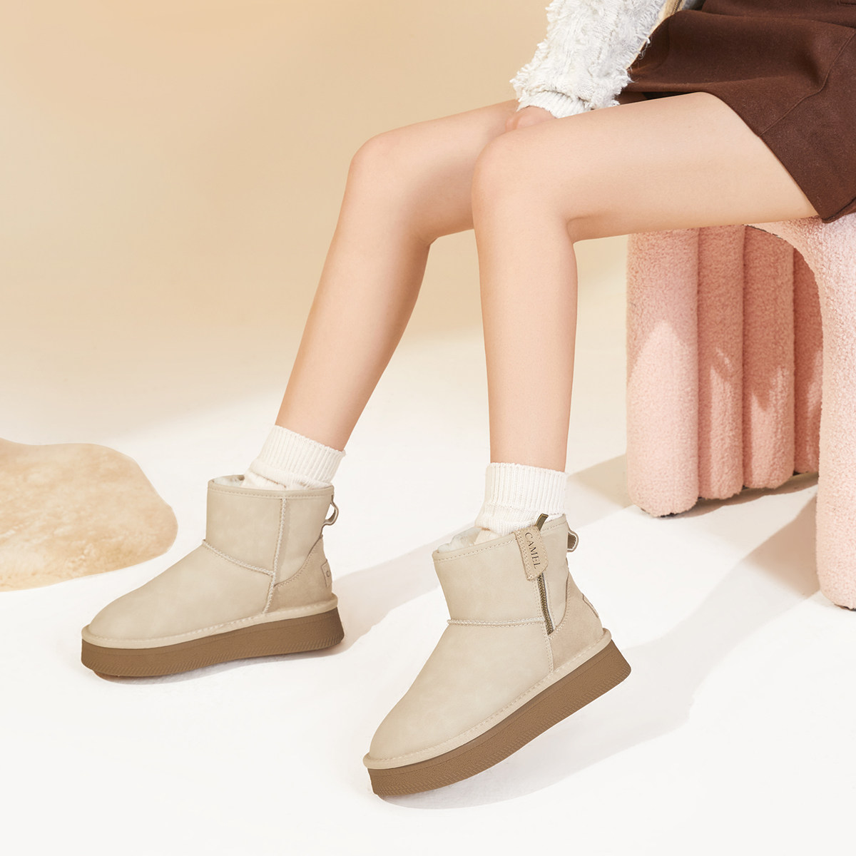 骆驼雪地靴女鞋2025冬季新款加绒保暖棉鞋女加厚东北厚底增高短靴