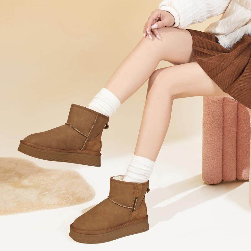 2025新款防水雪地靴女皮毛一体保暖加绒短筒百搭冬季真皮防滑棉鞋