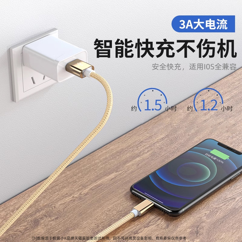【极客小K/特惠】适用于苹果iPhone/iPad平板13数据线12充电线6s手机7plus单头8快充XS加长11Pro闪充Max编织