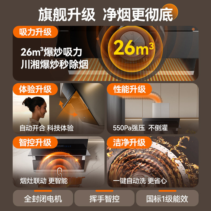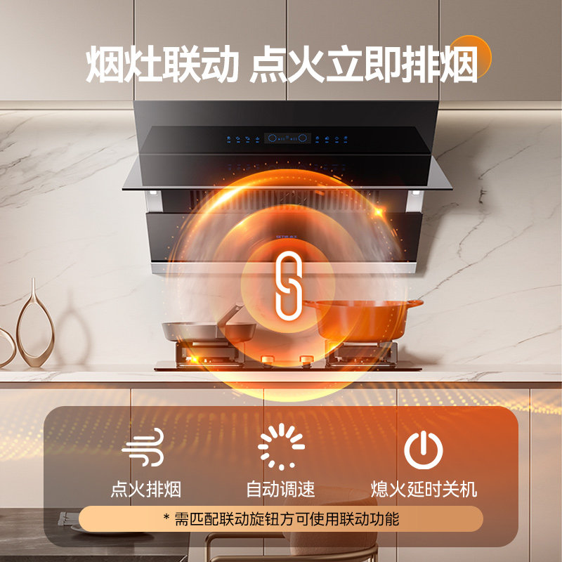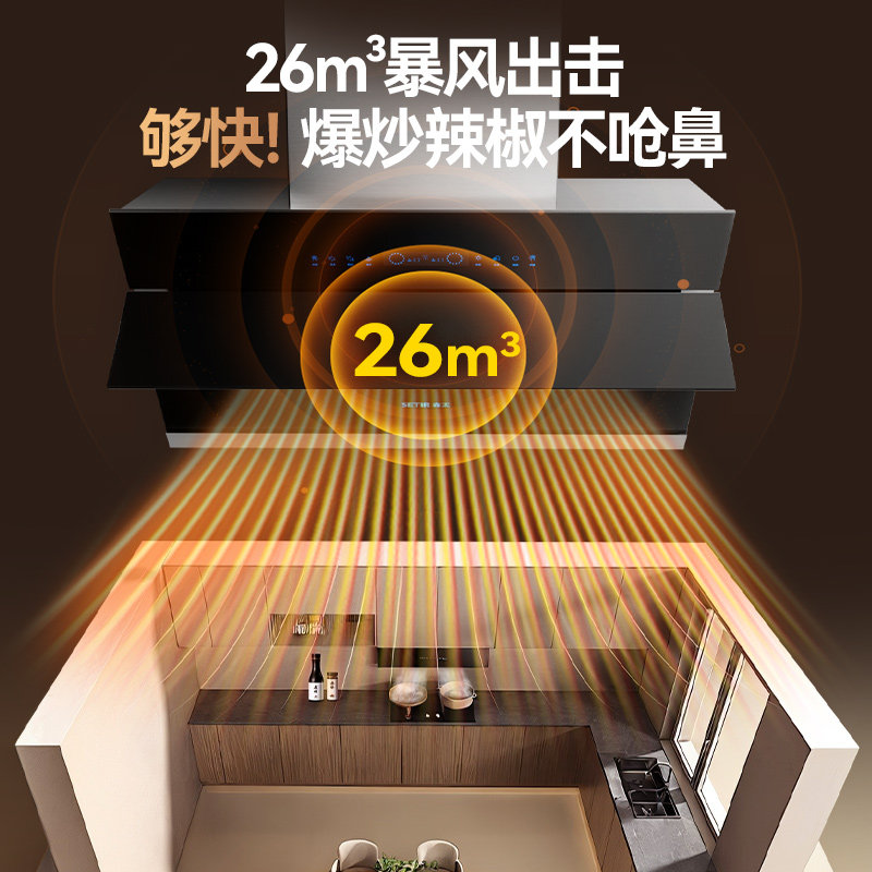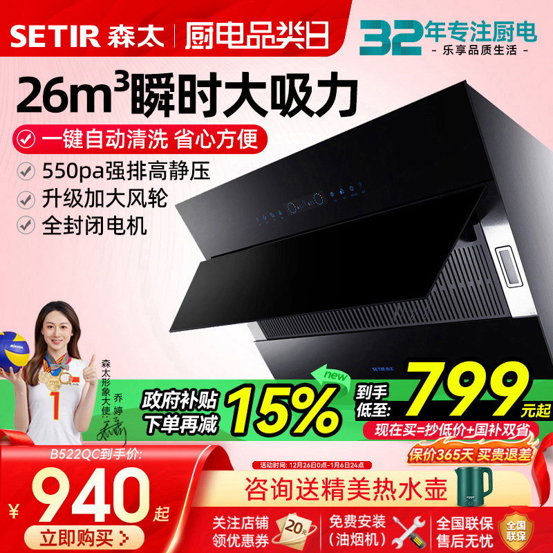 【政府补贴】森太大吸力抽油烟机家用厨房26m3侧吸式自动清洗B560