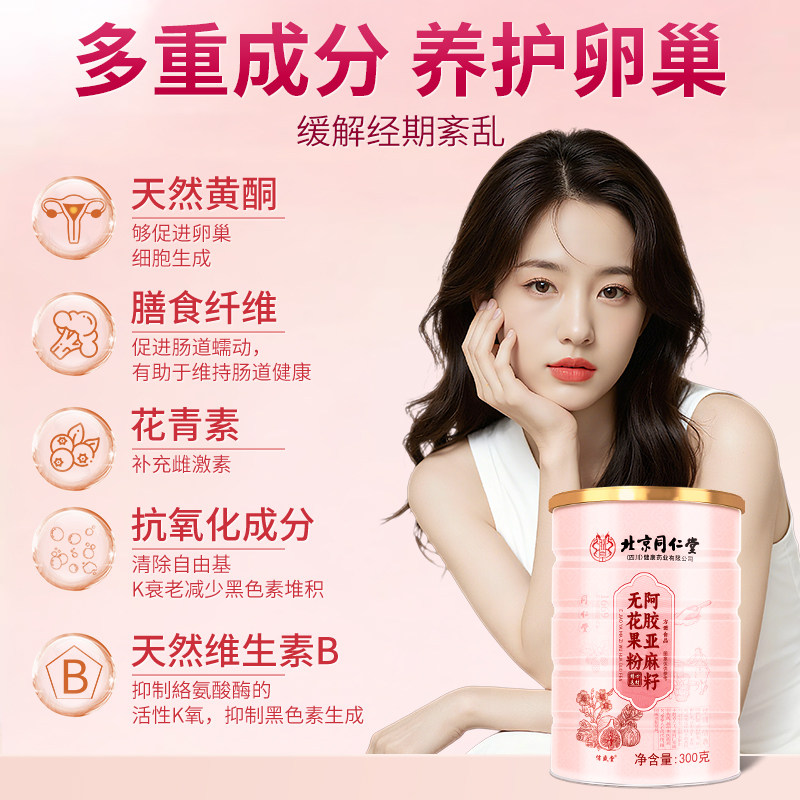 北京同仁堂亚麻籽无花果粉补养雌黄体酮天然种子循环代餐官方旗舰