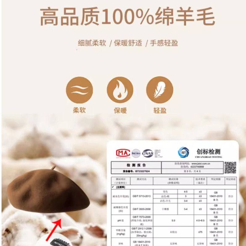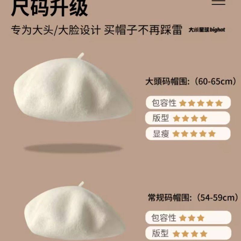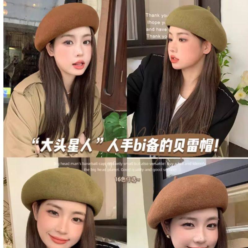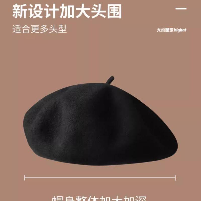 大头围贝雷帽大圆脸显脸小黑色帽子女款2025新款秋冬羊毛红色冬帽