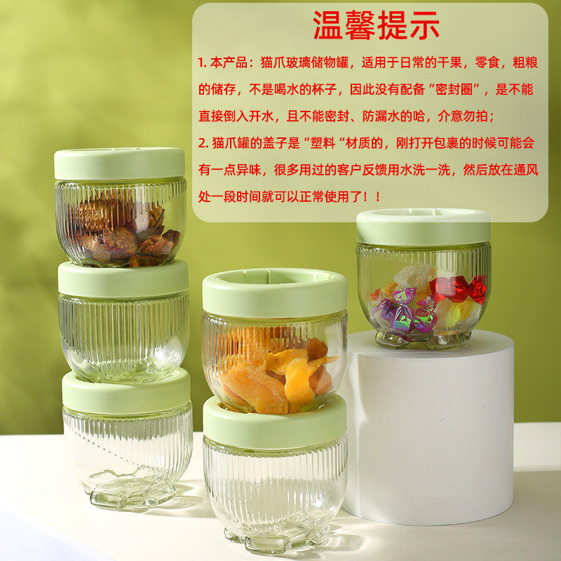 【6只】猫爪玻璃密封罐杂粮五谷杂粮干果食品级带盖储藏罐玻璃罐