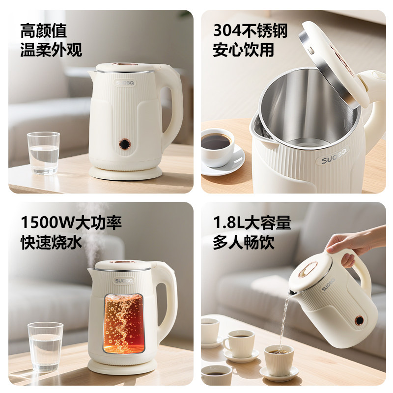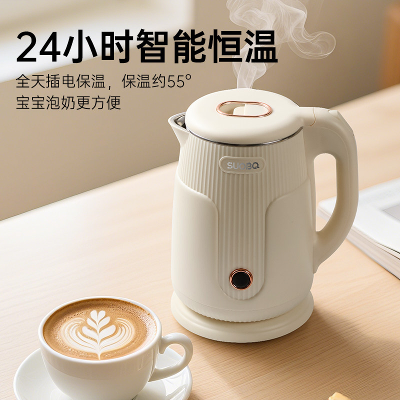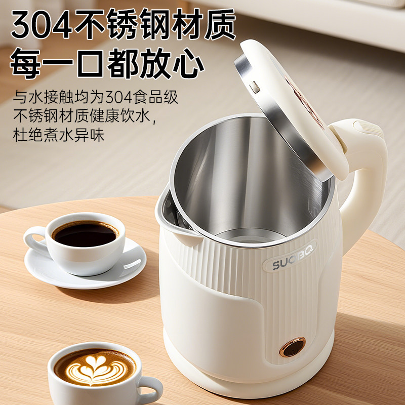 SUOBQ电热水壶烧水壶保温自动断电304不锈钢便携式静音年恒温煮水