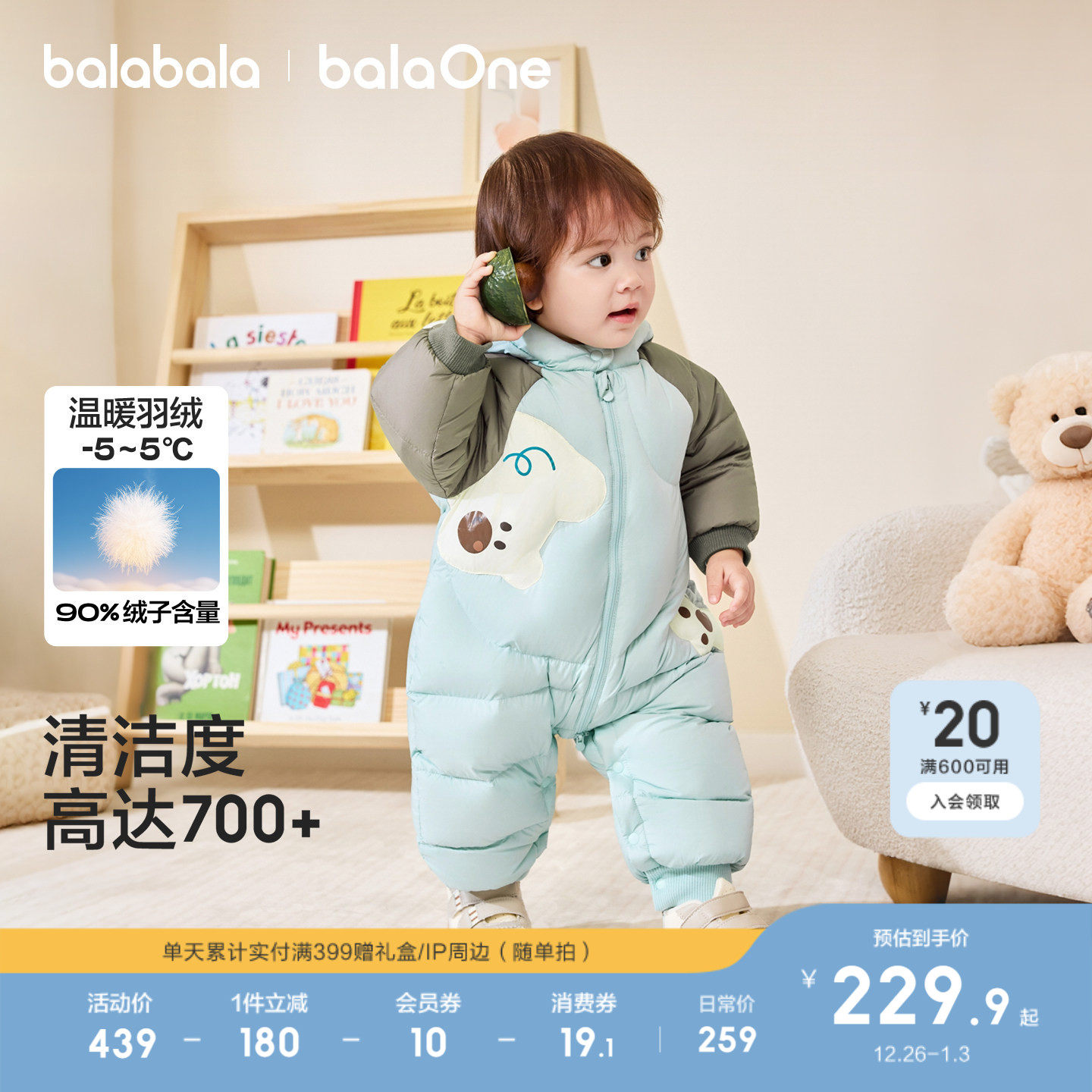 巴拉巴拉童装婴儿羽绒服新生儿连体衣宝宝衣服2025新款冬装哈衣萌