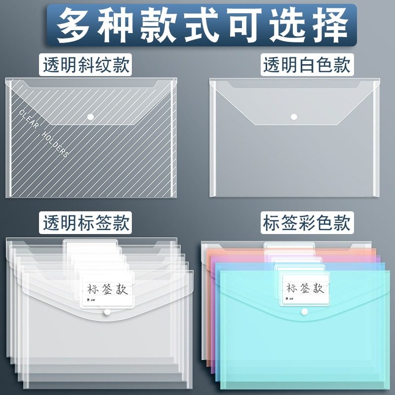 齐心透明a4文件袋防水高中生试卷加厚收纳袋塑料档案袋学生用按扣大容量票据作业产检纽扣资料袋办公用品