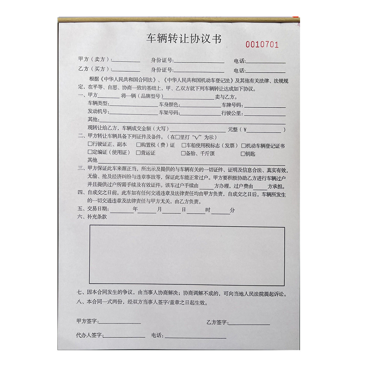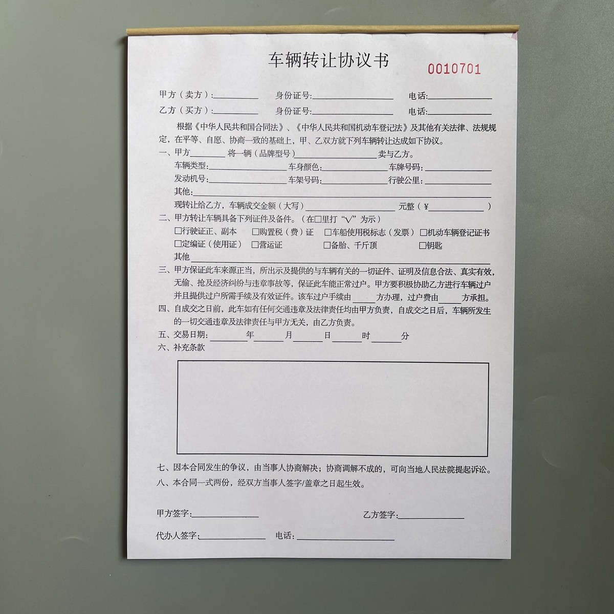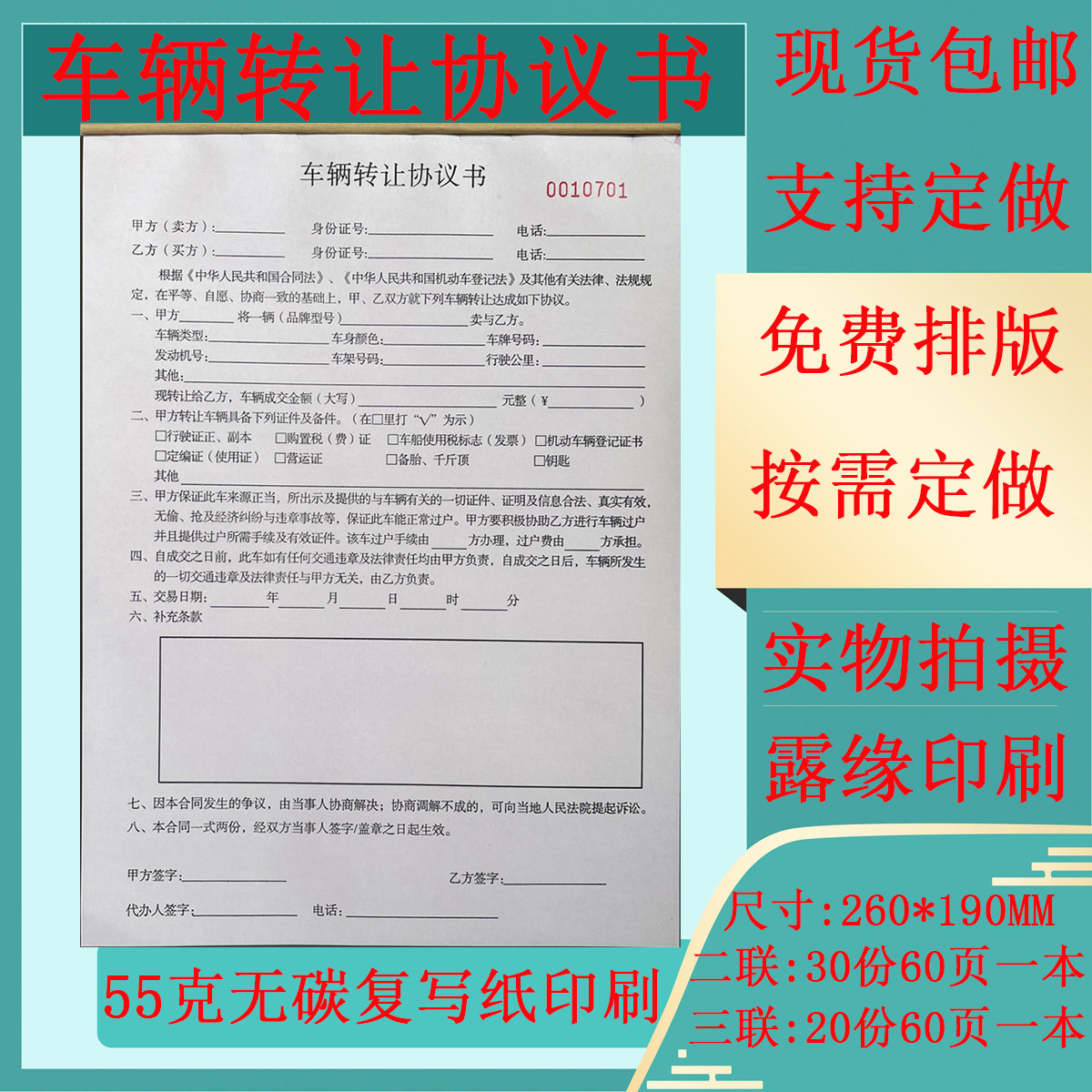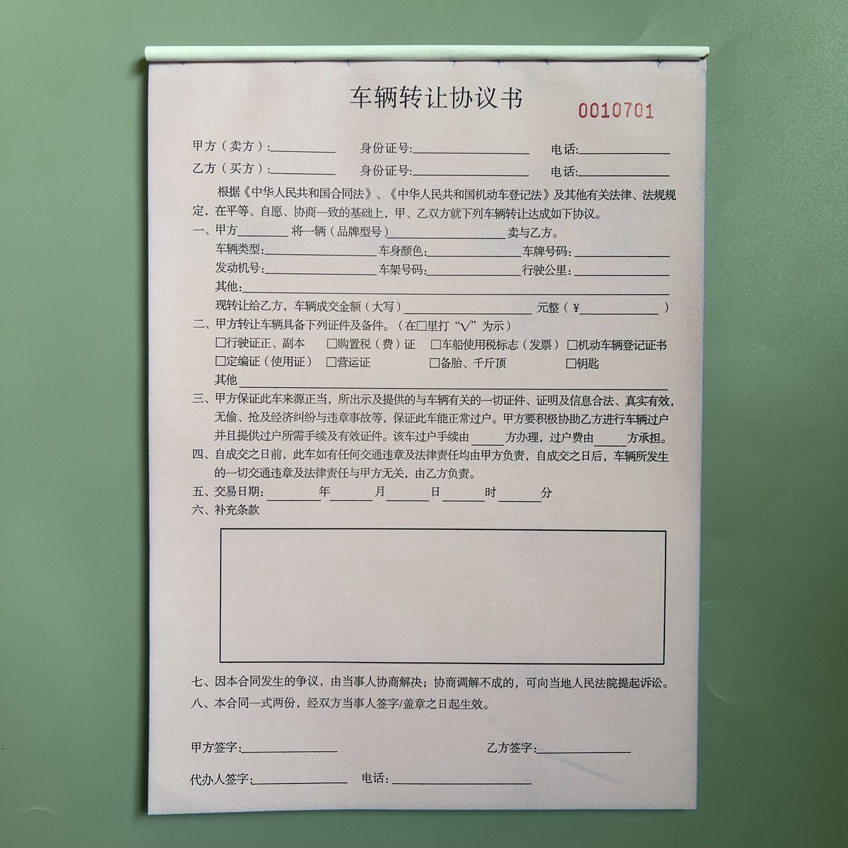 车辆转让协议书汽车销售合同单二手车买卖协议押金单定金收据定制