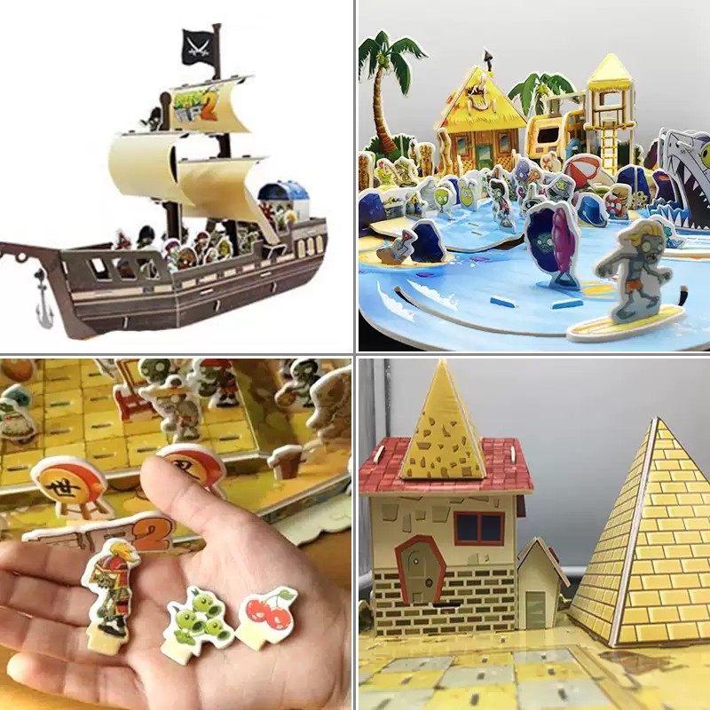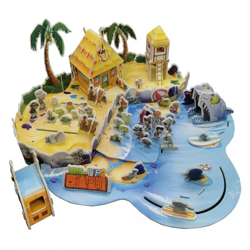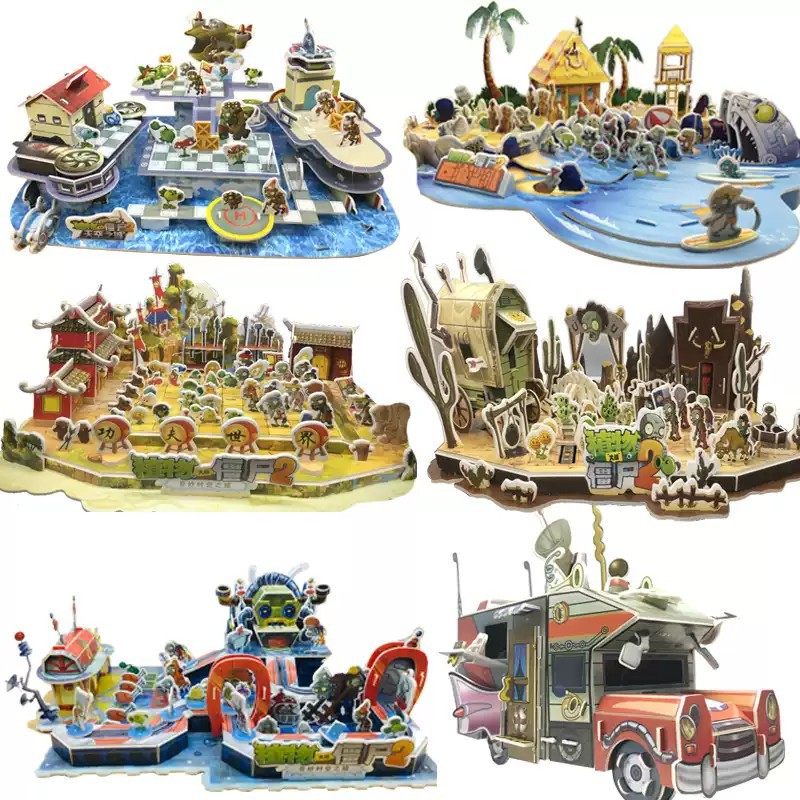 立体3d拼图植物大战僵尸2儿童6-10岁纸质拼装模型diy益智拼插玩具