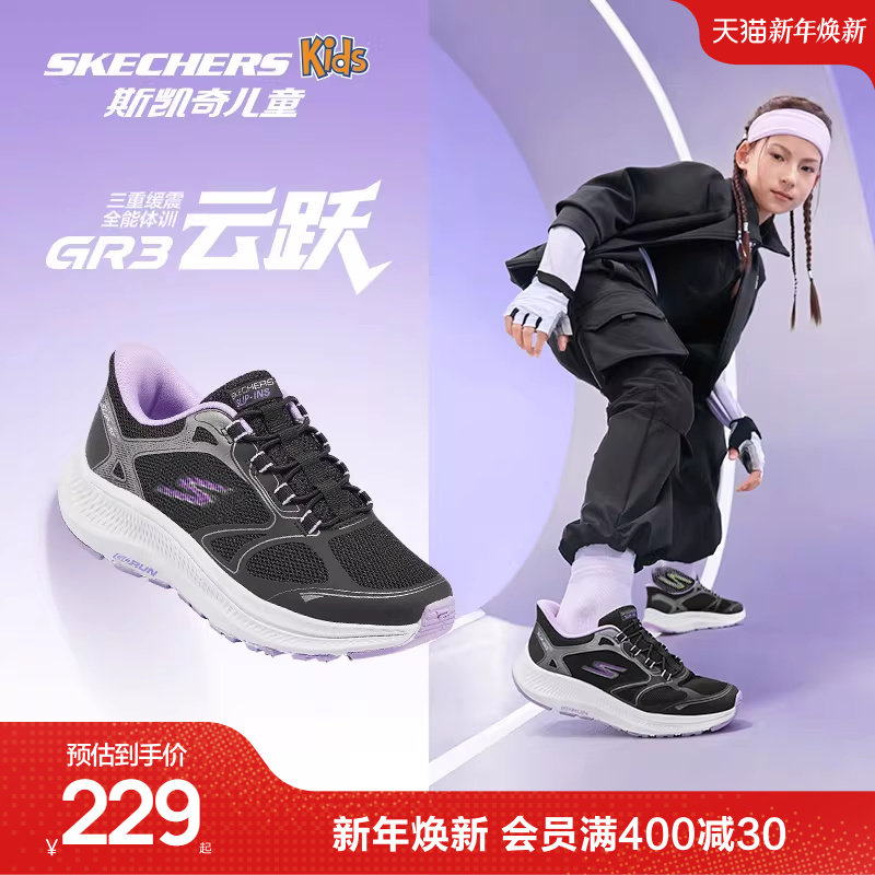 Skechers斯凯奇儿童云跃闪穿鞋女童专业减震跑步鞋秋季大童运动鞋