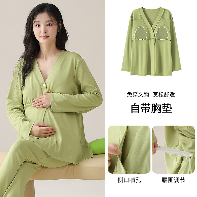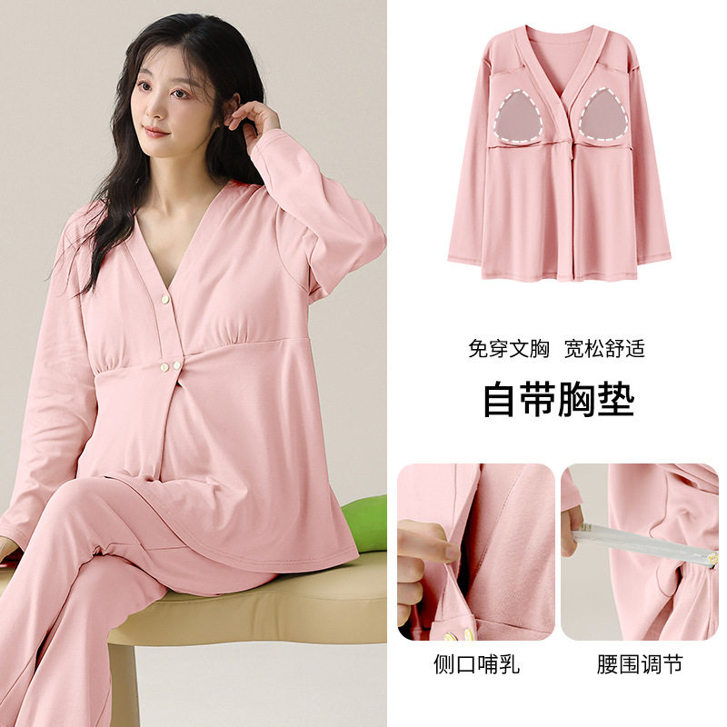 2025新款月子服带胸垫纯棉套装秋冬季产妇可哺乳家居服睡衣女春夏