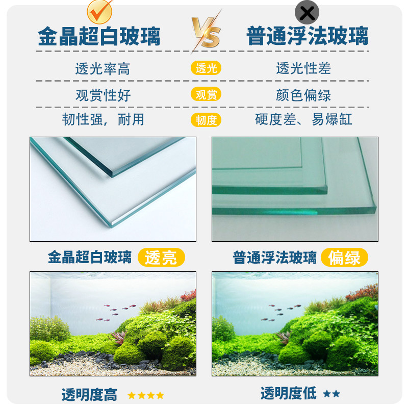 金晶超白玻璃鱼缸超白方缸小型溪流缸生态缸斗鱼缸乌龟缸裸缸长缸