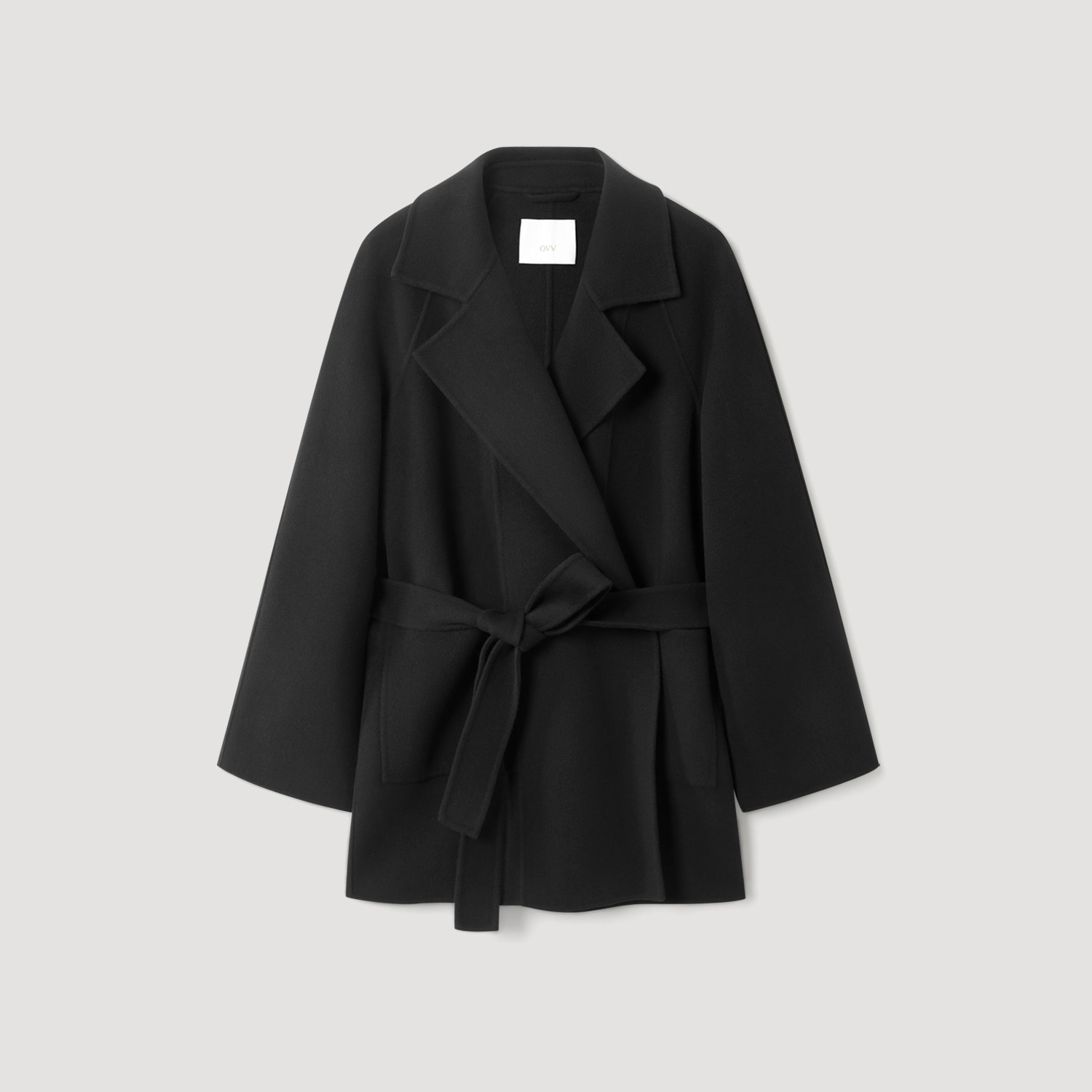 OVV2025秋冬新款女装经典优雅简约随附腰带翻领羊毛大衣