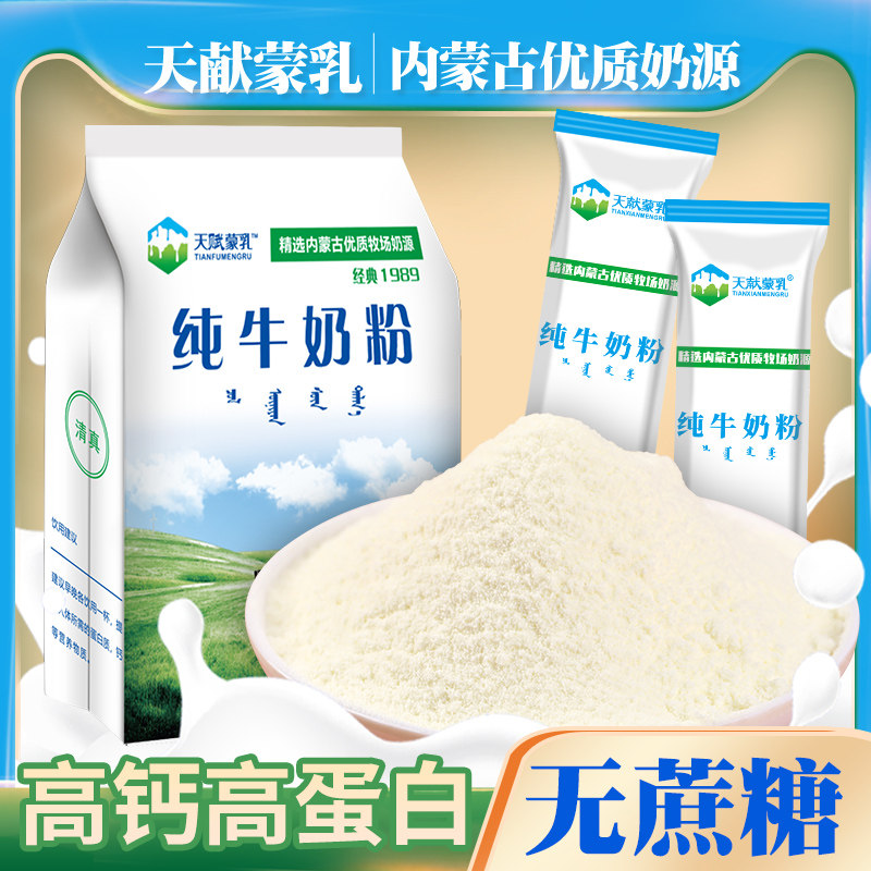 内蒙古国产老式纯牛奶粉510g独立小包装无蔗糖儿童中老年袋装高钙