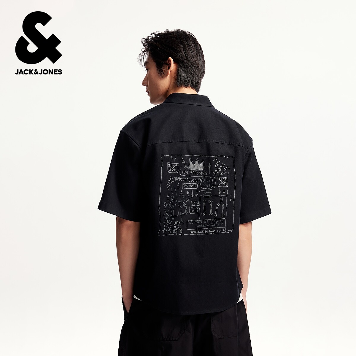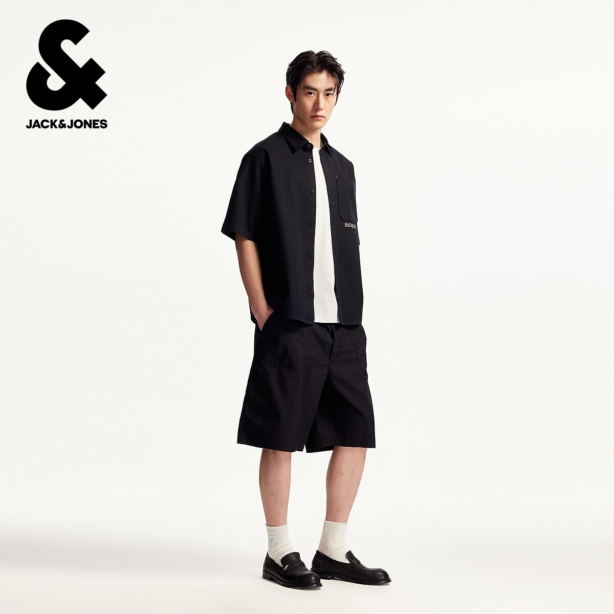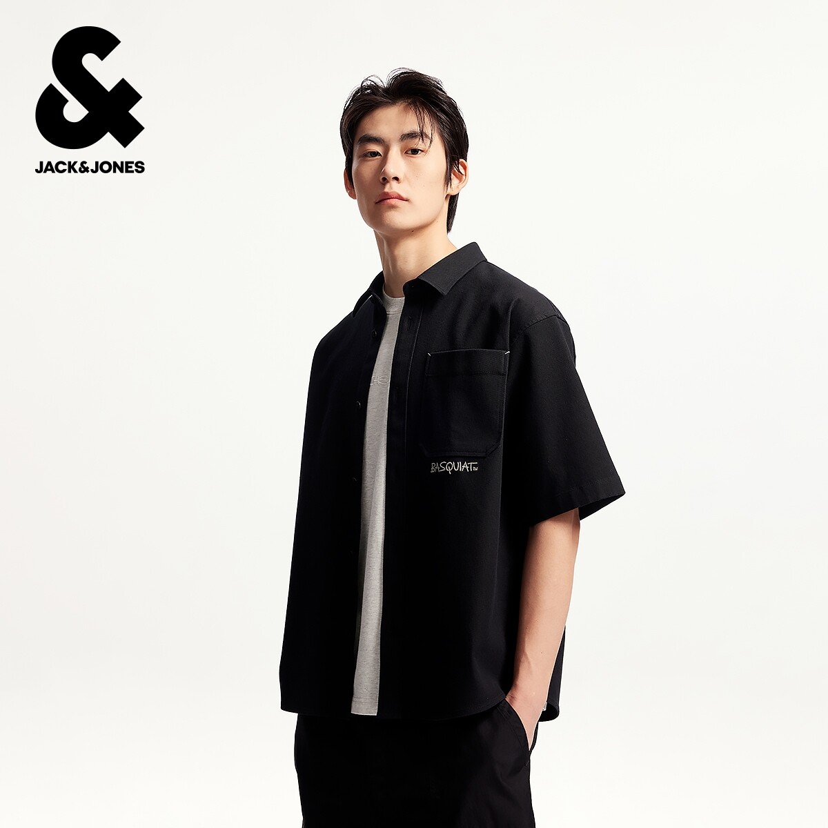 杰克琼斯男装BSQ联名秋季新款简约百搭翻领短袖宽松衬衫上衣