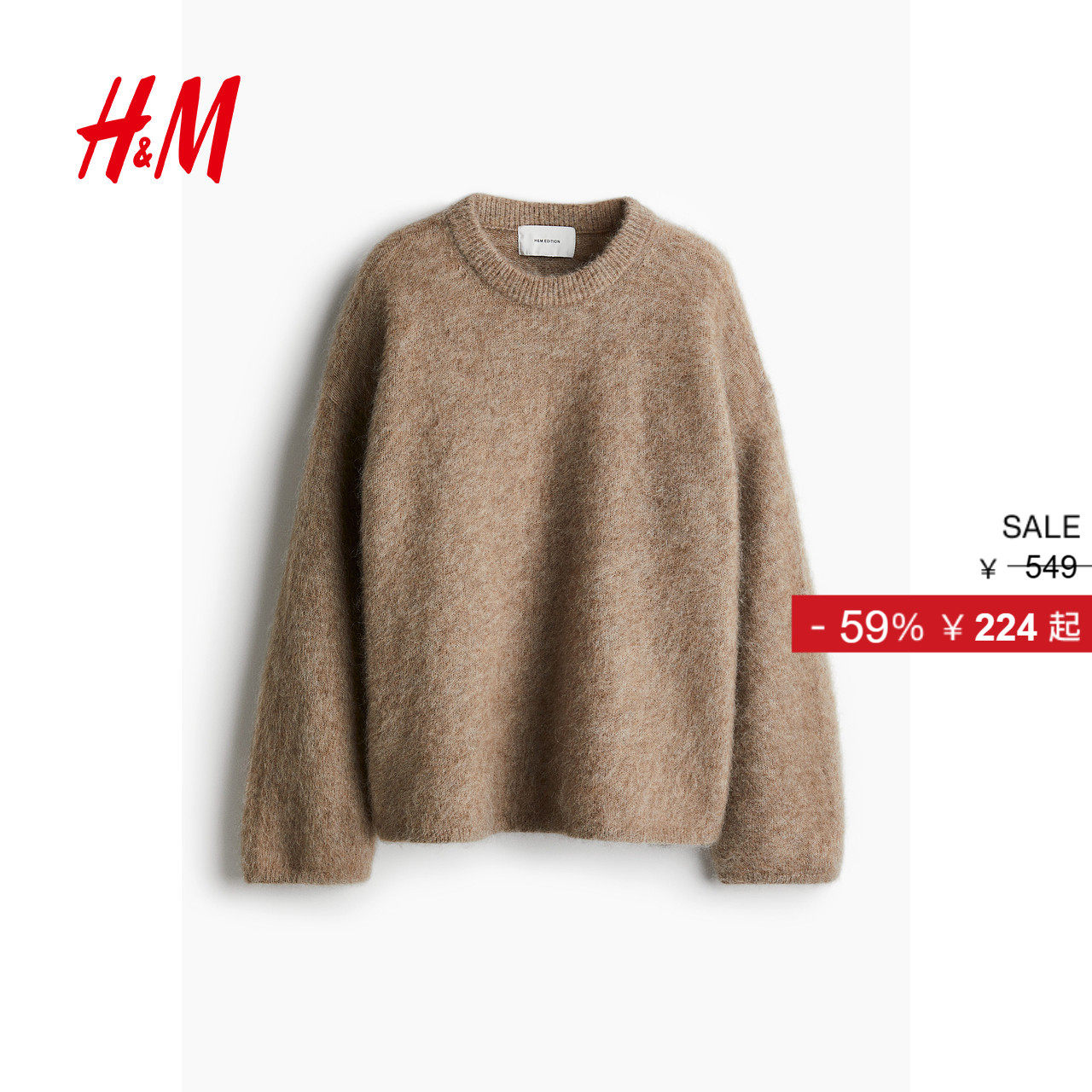 HM女士针织衫冬季简约气质大廓形马海毛混纺套衫1242877