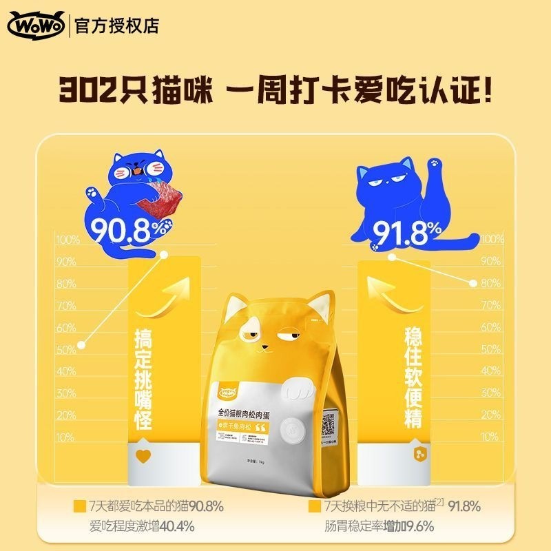 wowo喔喔猫粮鸽子兔肉松冻干全价成幼官方正品无谷送试吃鸡肉零食